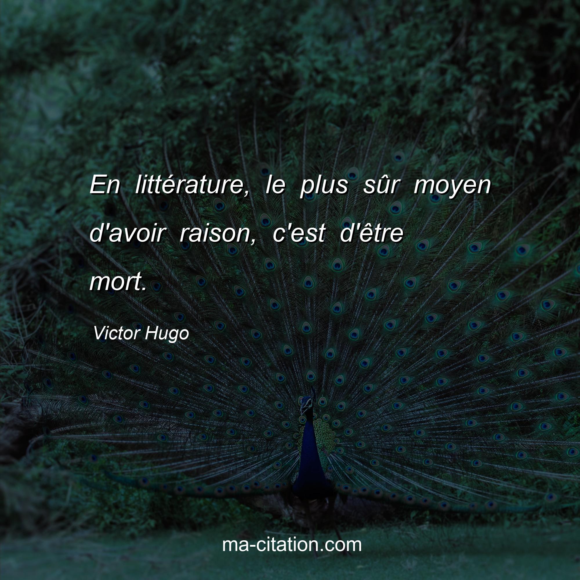 Citation sur la vie de Victor Hugo :En littérature, le plus sûr moyen d'avoir raison, c'est d'être mort.