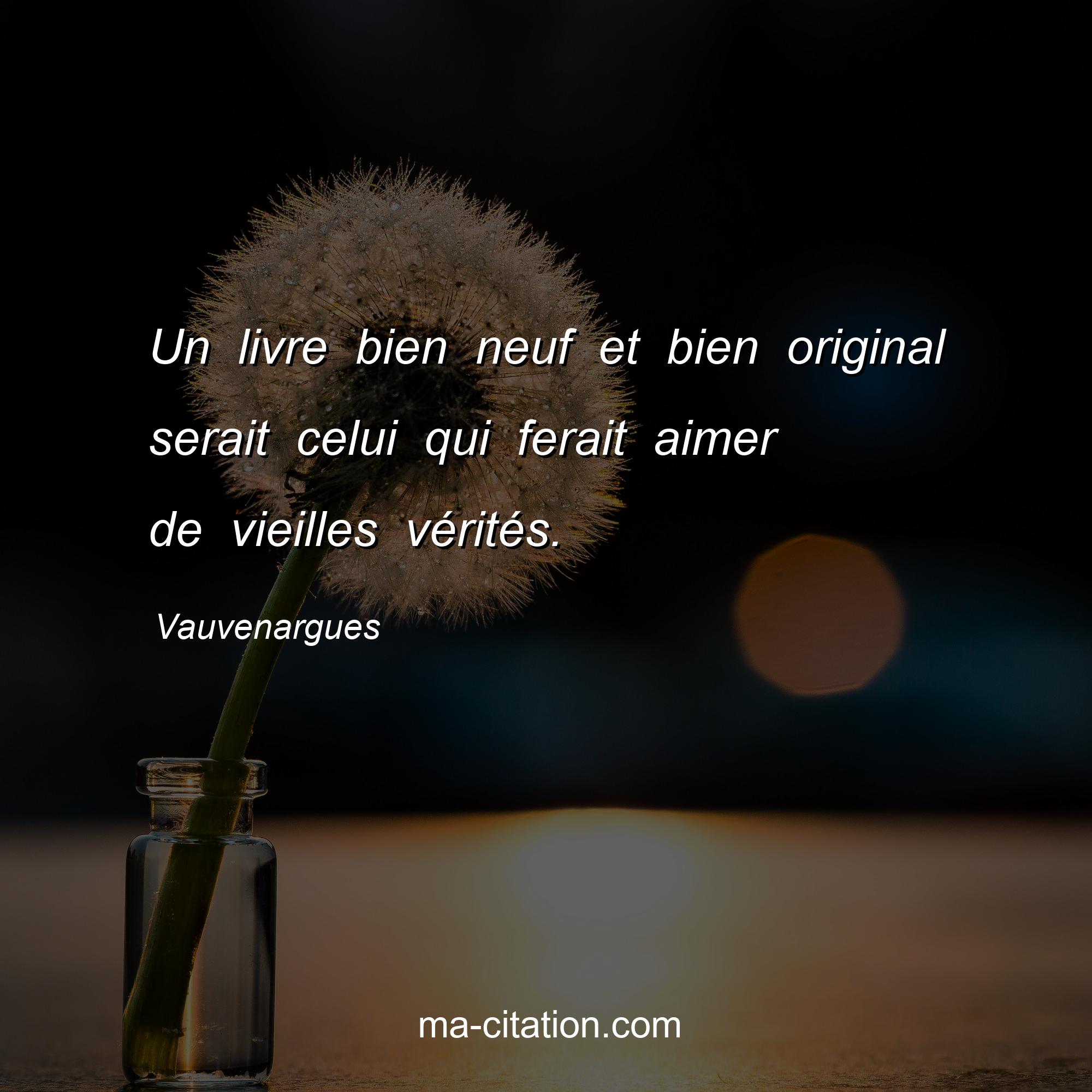 Citation sur la vie de Vauvenargues :Un livre bien neuf et bien original serait celui qui ferait aimer de vieilles vérités.