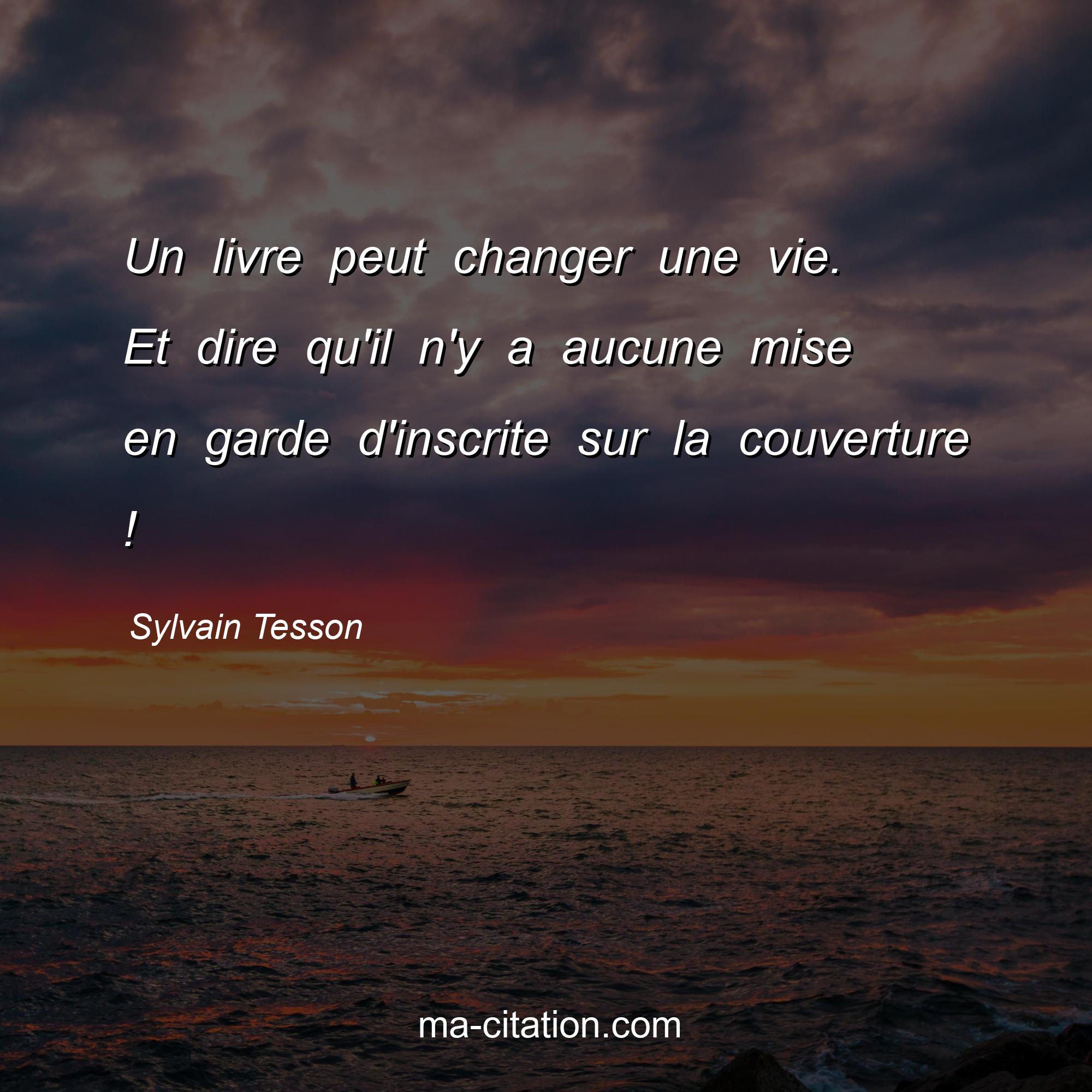 Sylvain Tesson est l'auteur de la citation sur la vie "Un livre peut changer une vie. Et dire qu'il n'y a aucune mise en garde d'inscrite sur la couverture !".