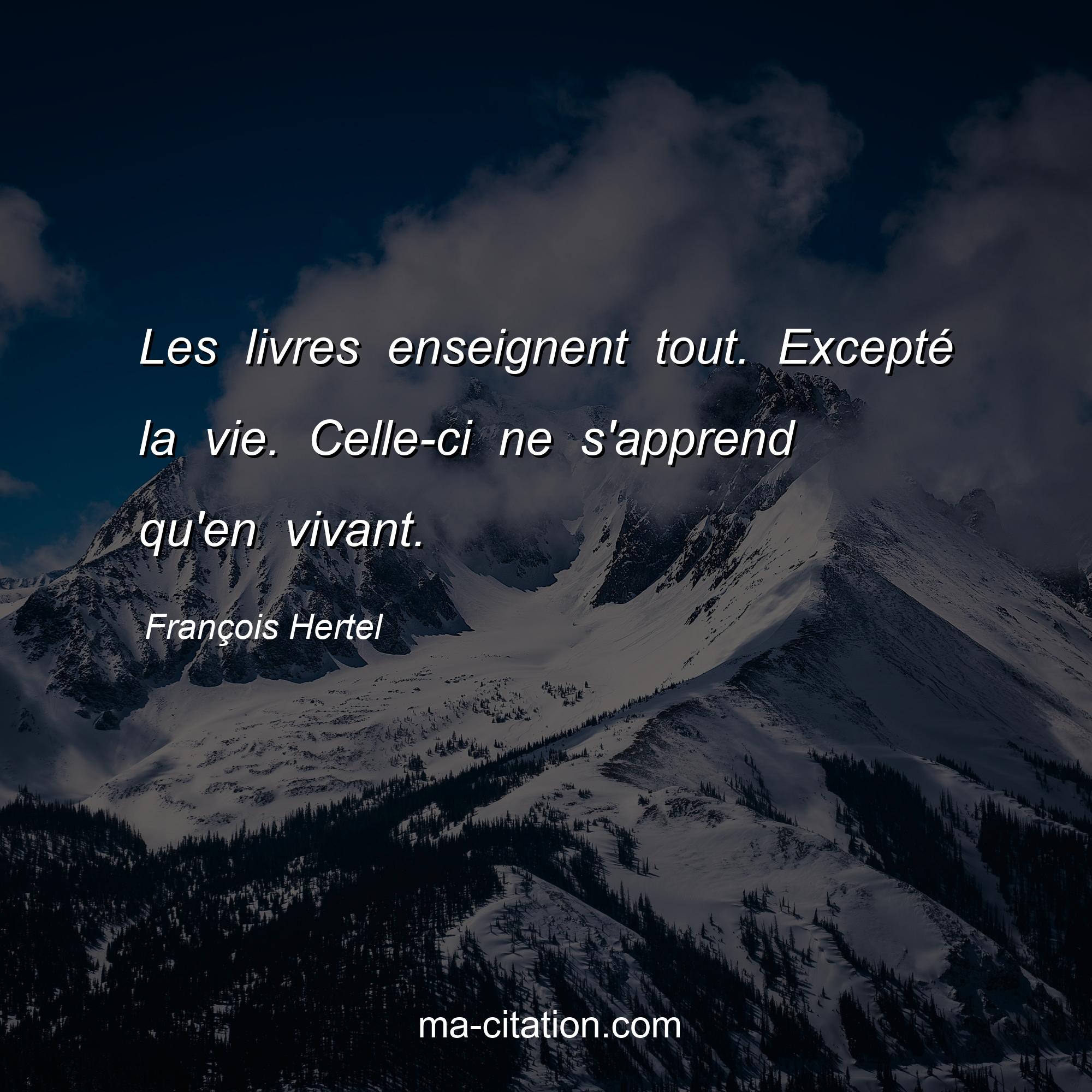 François Hertel est l'auteur de la citation sur la vie "Les livres enseignent tout. Excepté la vie. Celle-ci ne s'apprend qu'en vivant.".