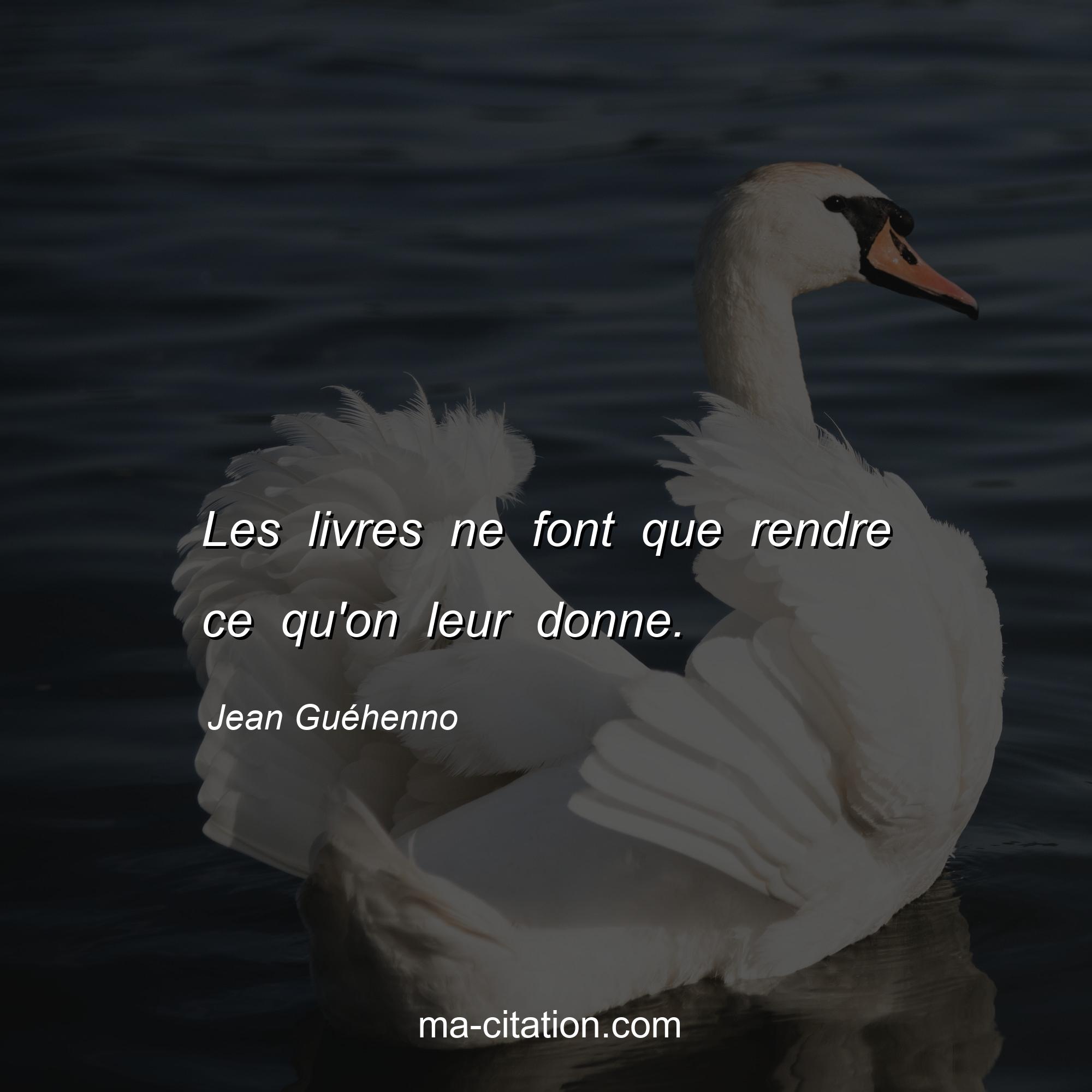 Citation sur la vie de Jean Guéhenno :Les livres ne font que rendre ce qu'on leur donne.
