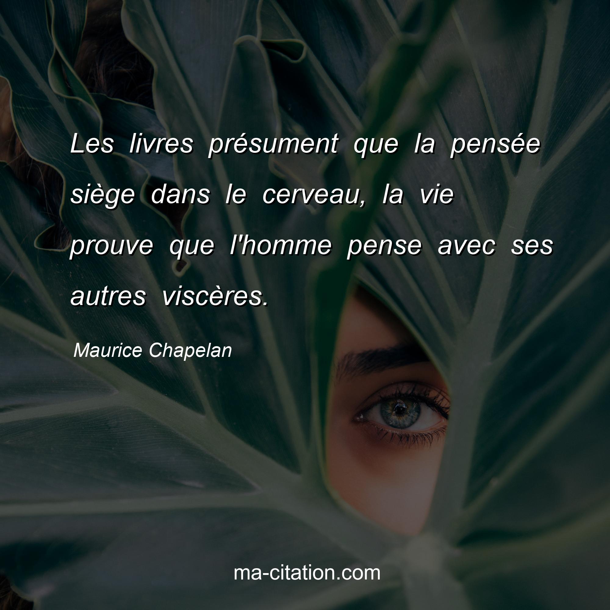 Citation sur la vie de Maurice Chapelan :Les livres présument que la pensée siège dans le cerveau, la vie prouve que l'homme pense avec ses autres viscères.