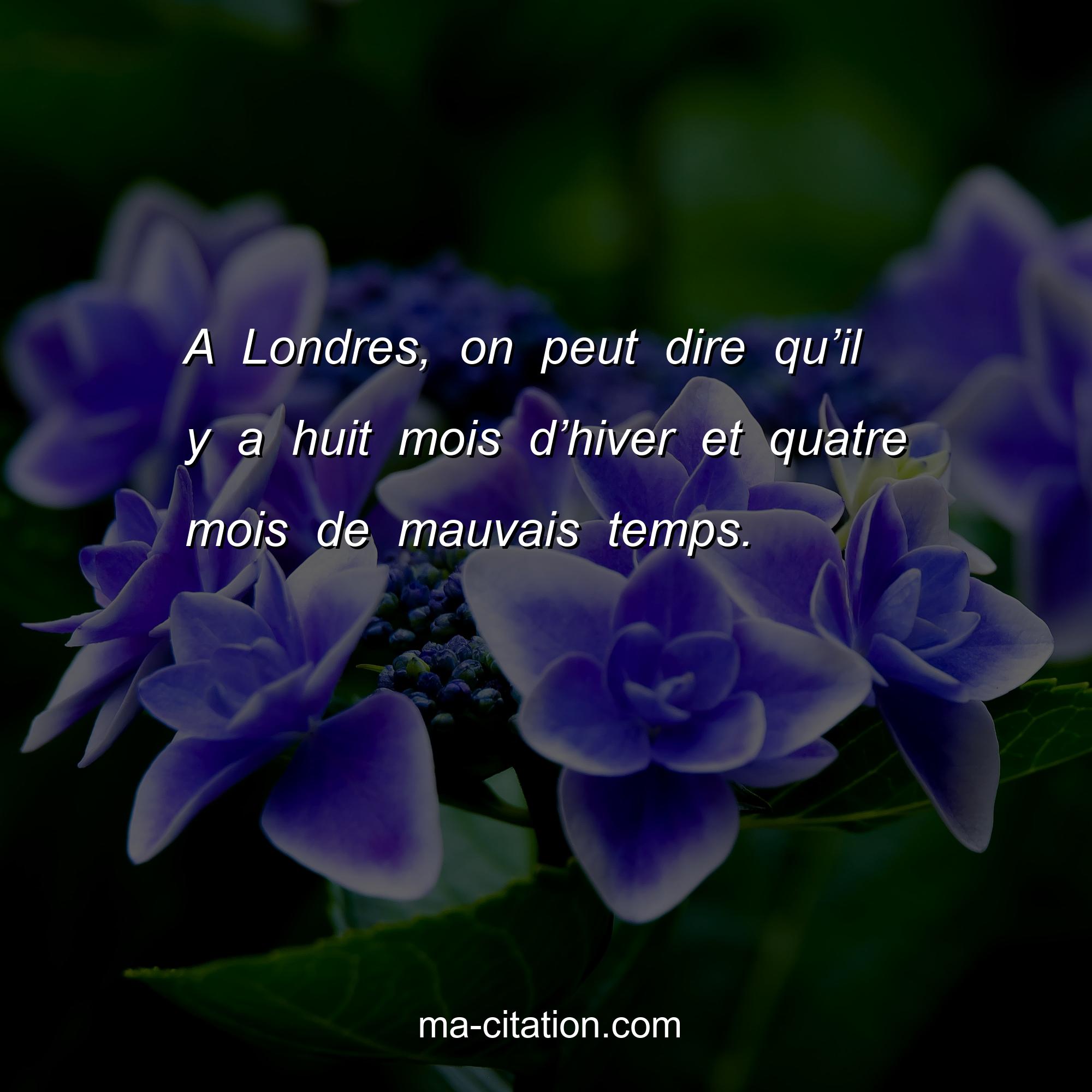 Citation sur la vie :A Londres, on peut dire qu’il y a huit mois d’hiver et quatre mois de mauvais temps.