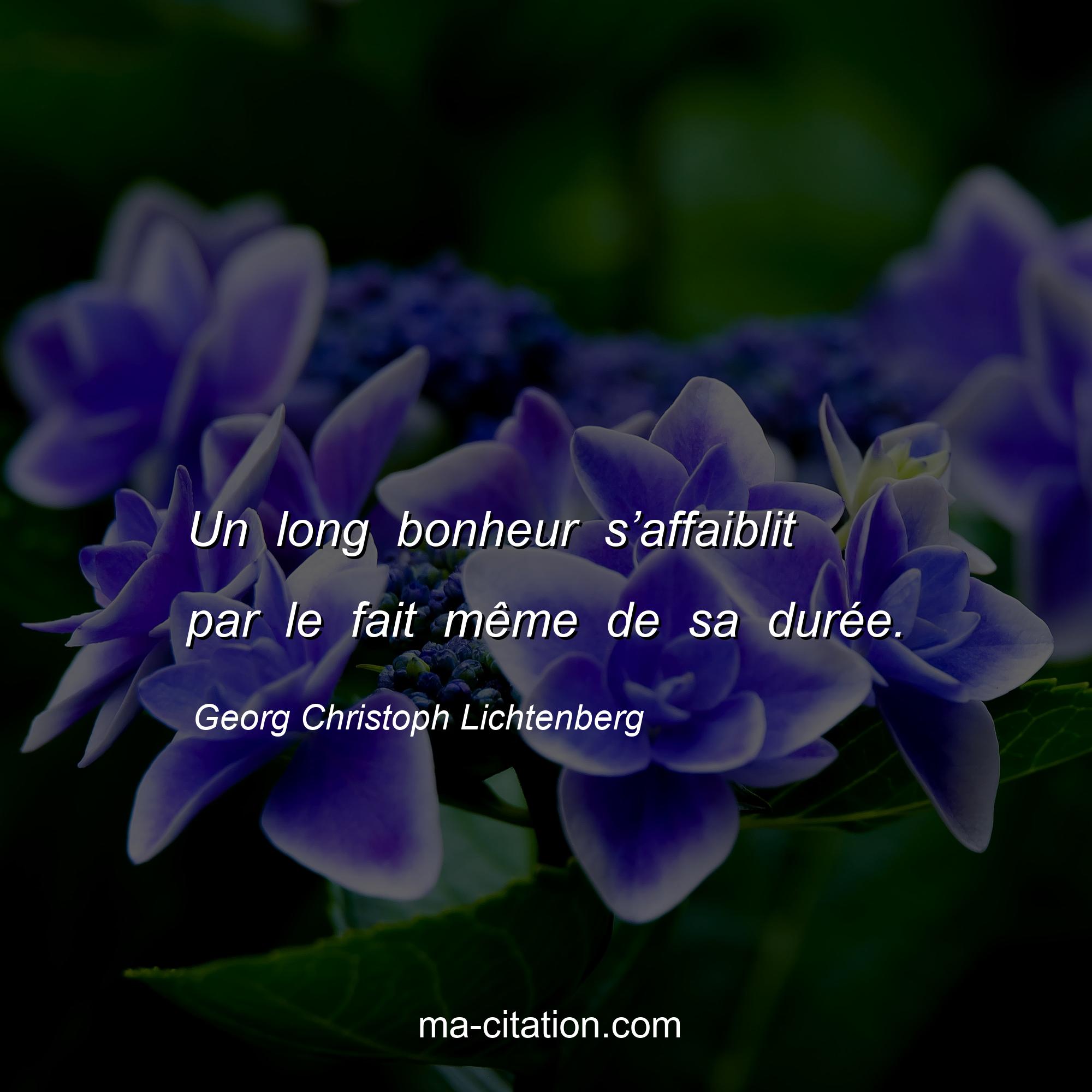Citation sur la vie de Georg Christoph Lichtenberg :Un long bonheur s’affaiblit par le fait même de sa durée.