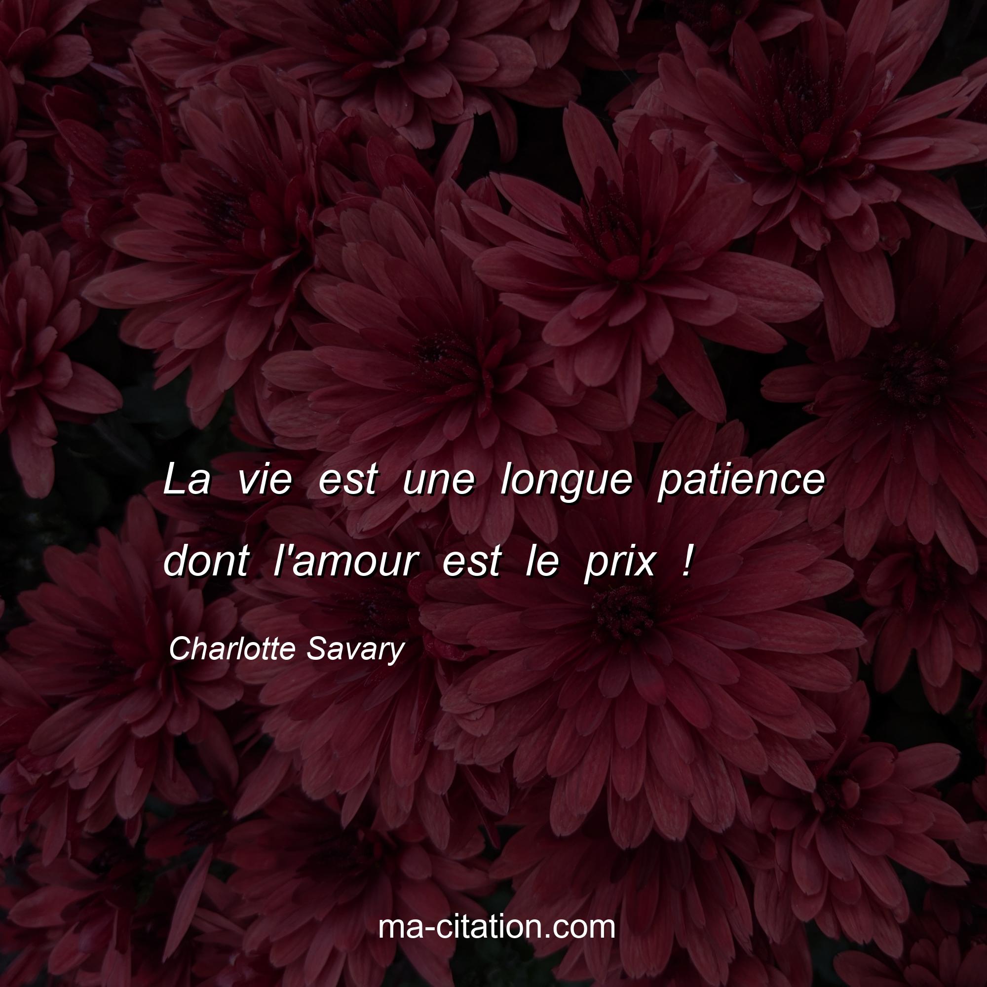 Citation sur la vie de Charlotte Savary :La vie est une longue patience dont l'amour est le prix !