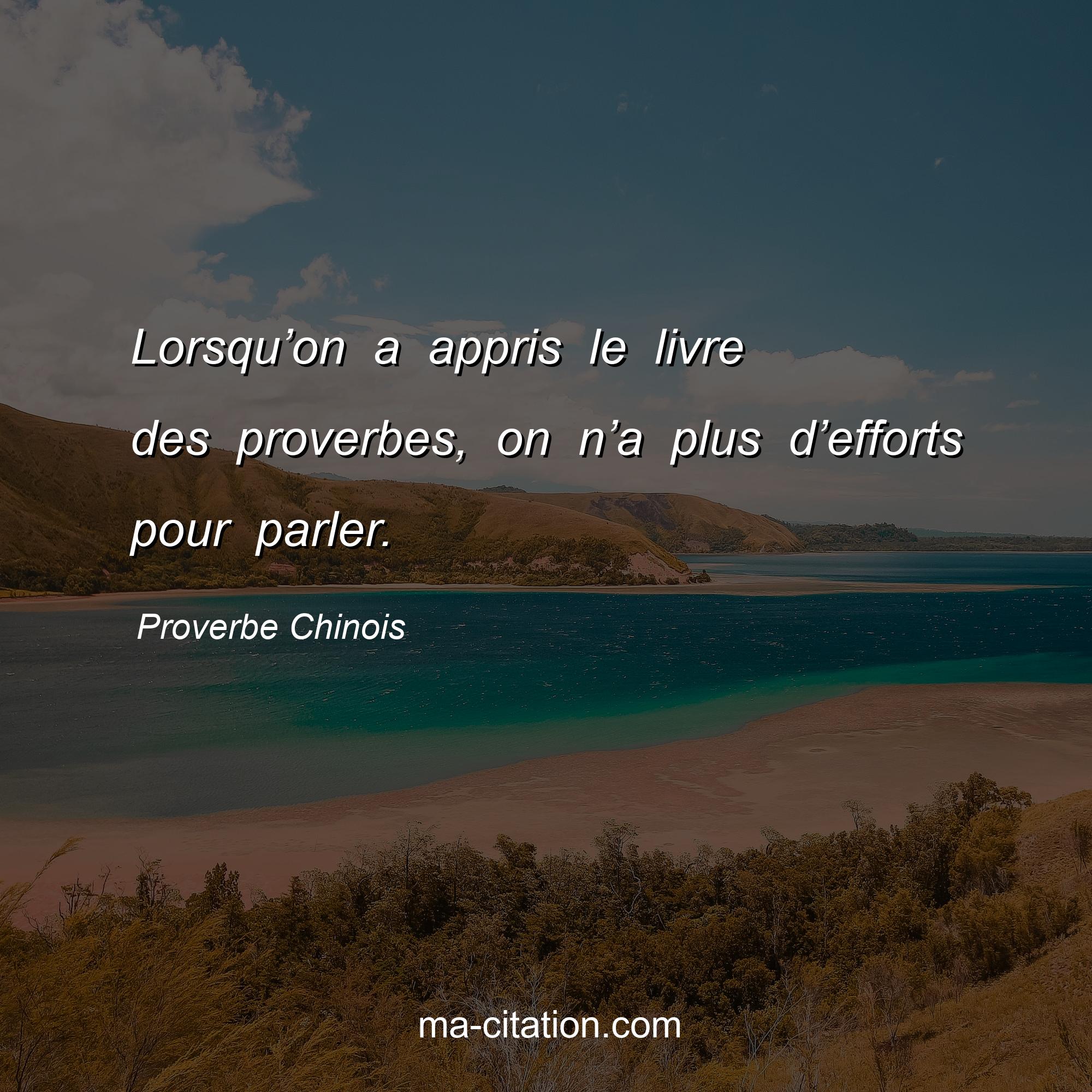 Proverbe Chinois sur la vie :Lorsqu’on a appris le livre des proverbes, on n’a plus d’efforts pour parler.