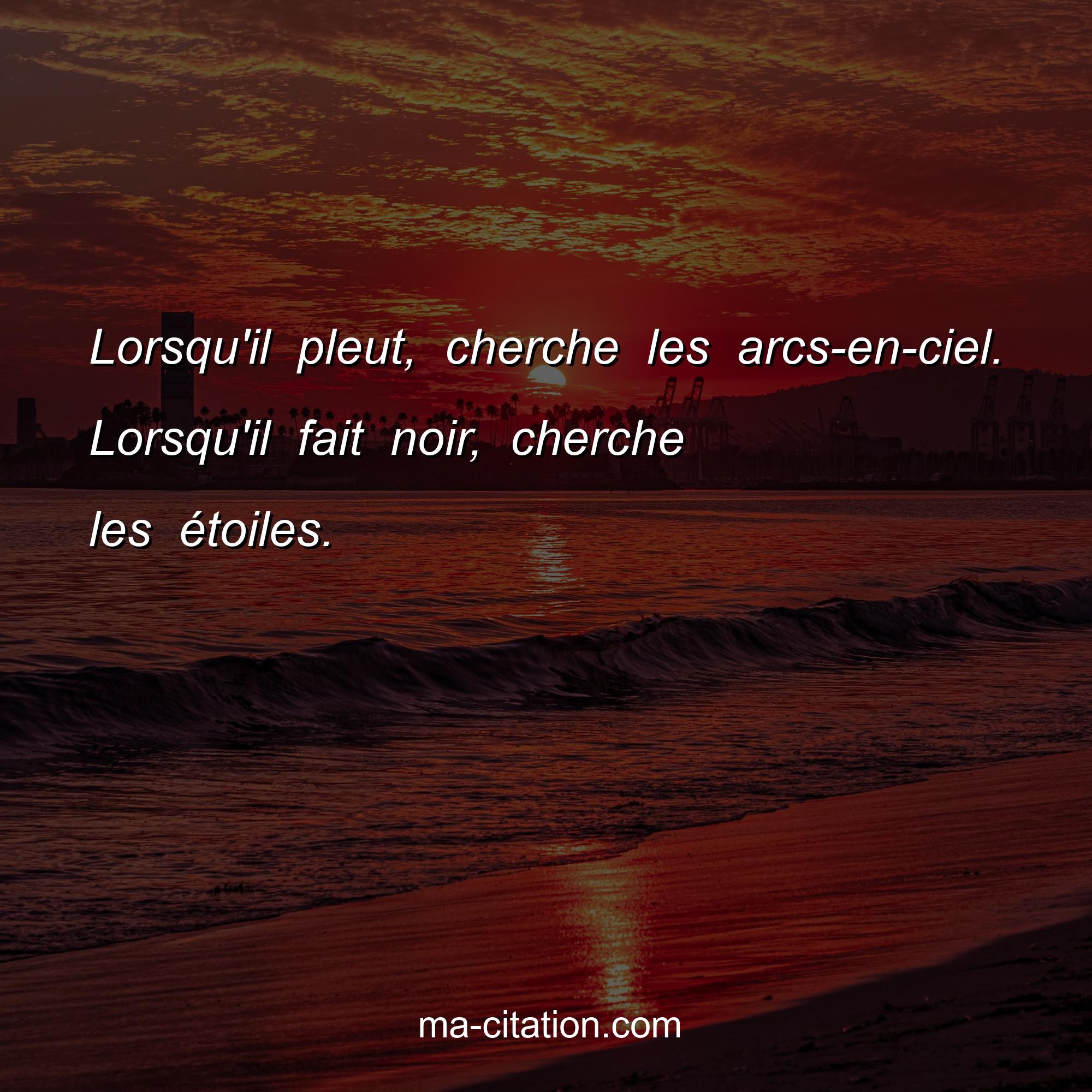 Lorsqu'il pleut, cherche les arcs-en-ciel. Lorsqu'il fait noir, cherche les étoiles.