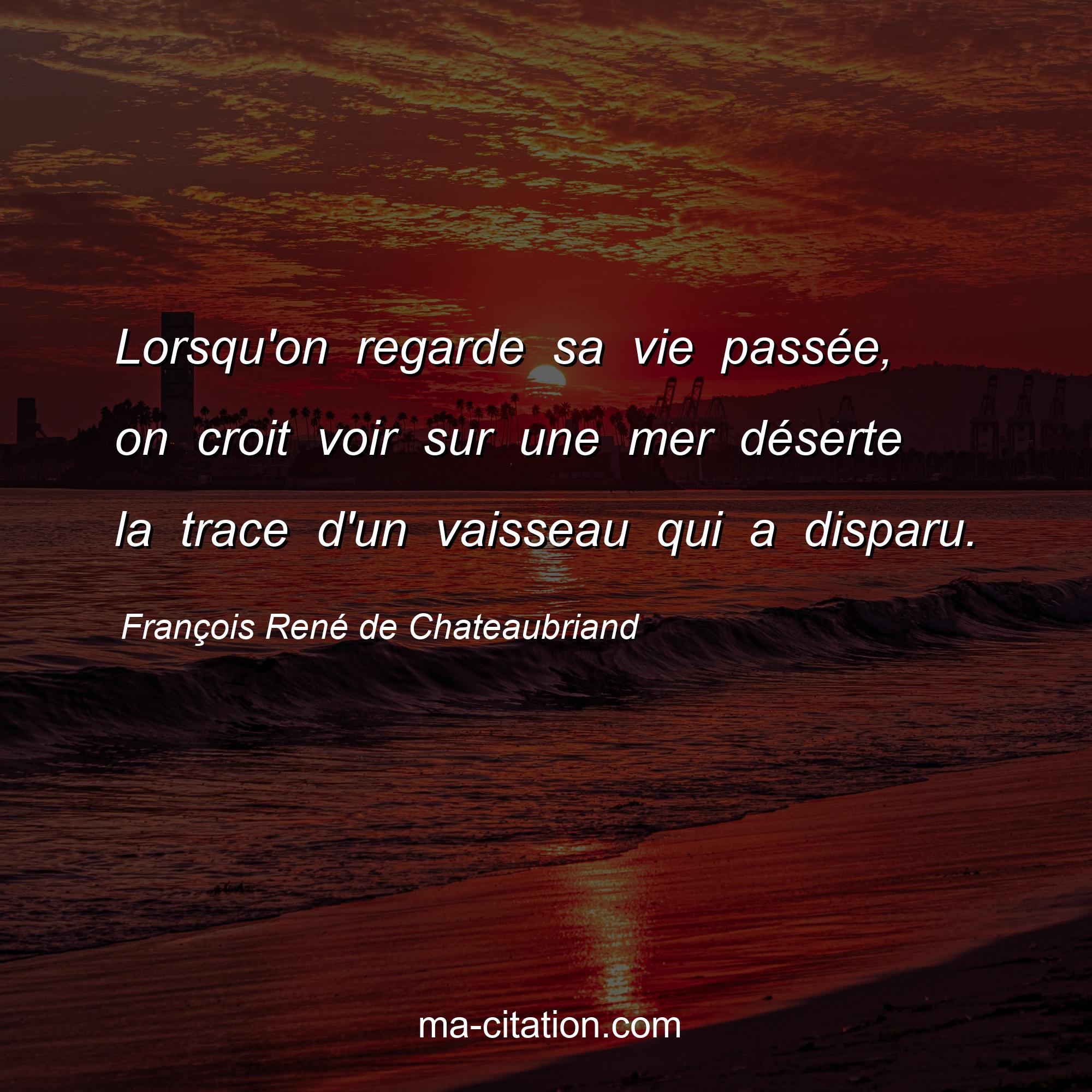 Citation sur la vie de François René de Chateaubriand :Lorsqu'on regarde sa vie passée, on croit voir sur une mer déserte la trace d'un vaisseau qui a disparu.