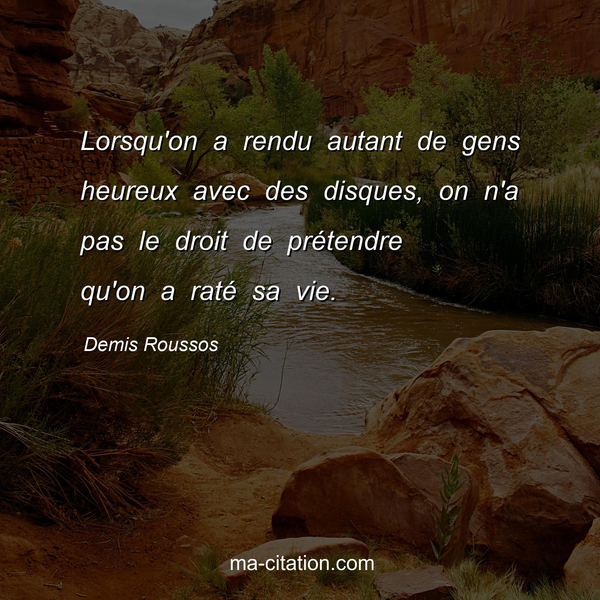 Citation sur la vie de Demis Roussos :Lorsqu'on a rendu autant de gens heureux avec des disques, on n'a pas le droit de prétendre qu'on a raté sa vie.
