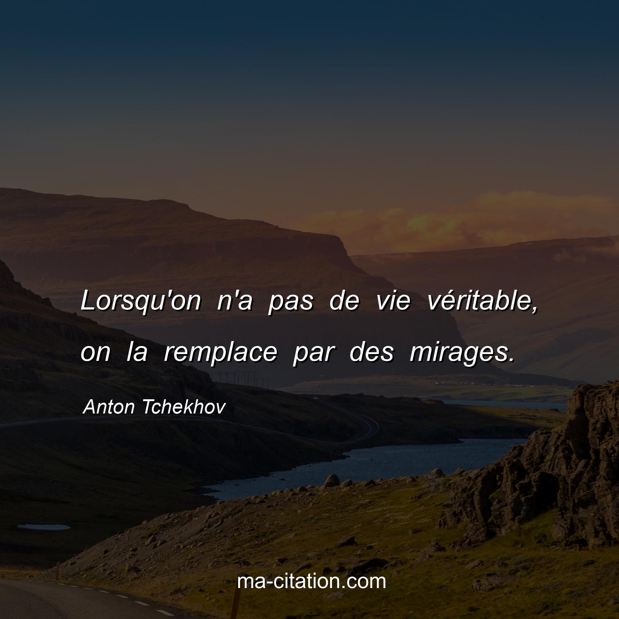 Citation sur la vie d'Anton Tchekhov :Lorsqu'on n'a pas de vie véritable, on la remplace par des mirages.