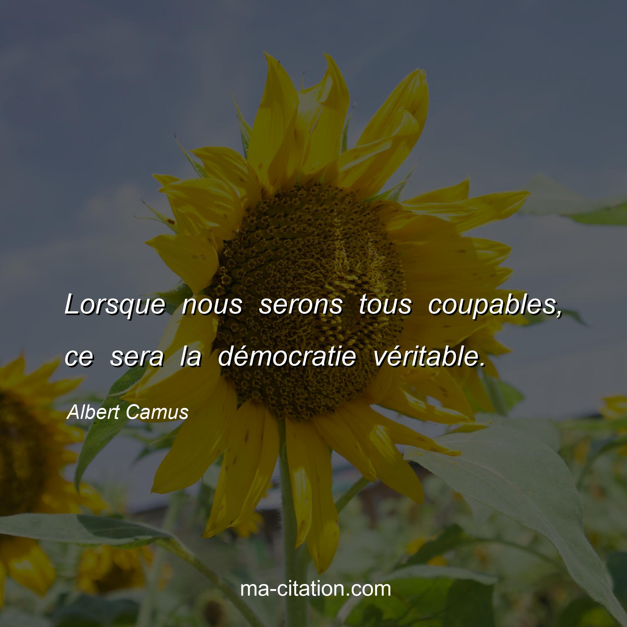 Citation sur la vie d'Albert Camus :Lorsque nous serons tous coupables, ce sera la démocratie véritable.