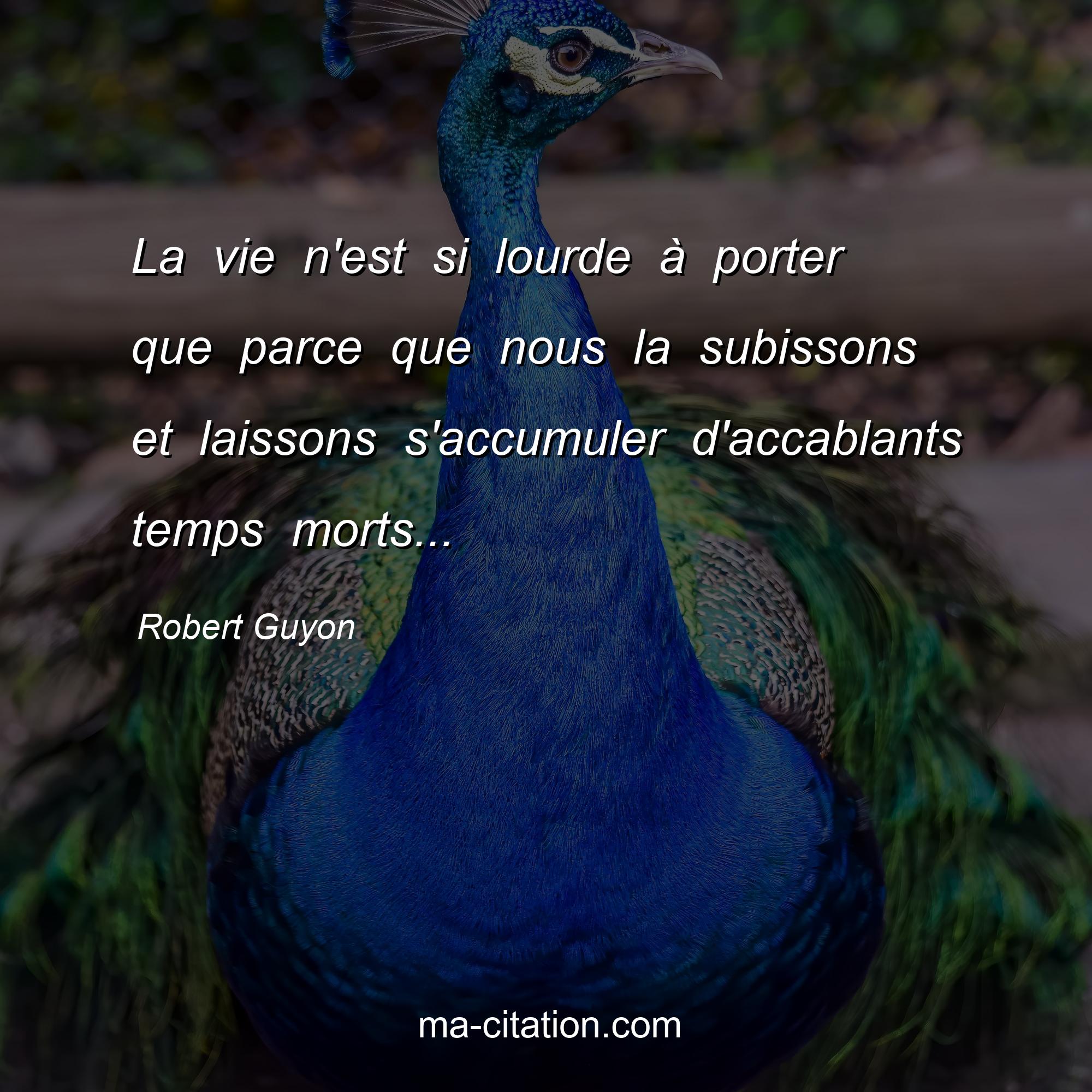 Robert Guyon est l'auteur de la citation sur la vie "La vie n'est si lourde à porter que parce que nous la subissons et laissons s'accumuler d'accablants temps morts...".