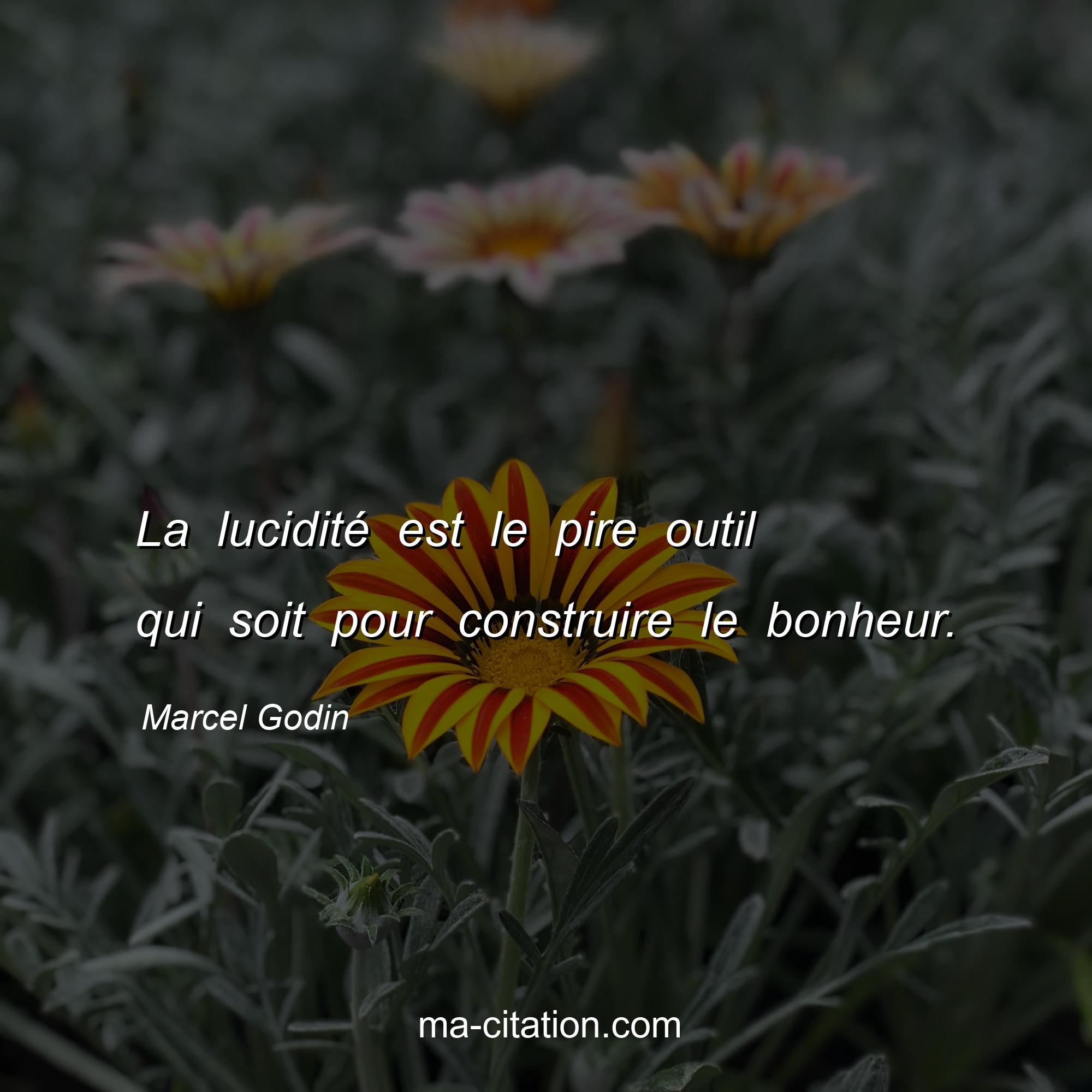Marcel Godin est l'auteur de la citation sur la vie "La lucidité est le pire outil qui soit pour construire le bonheur.".