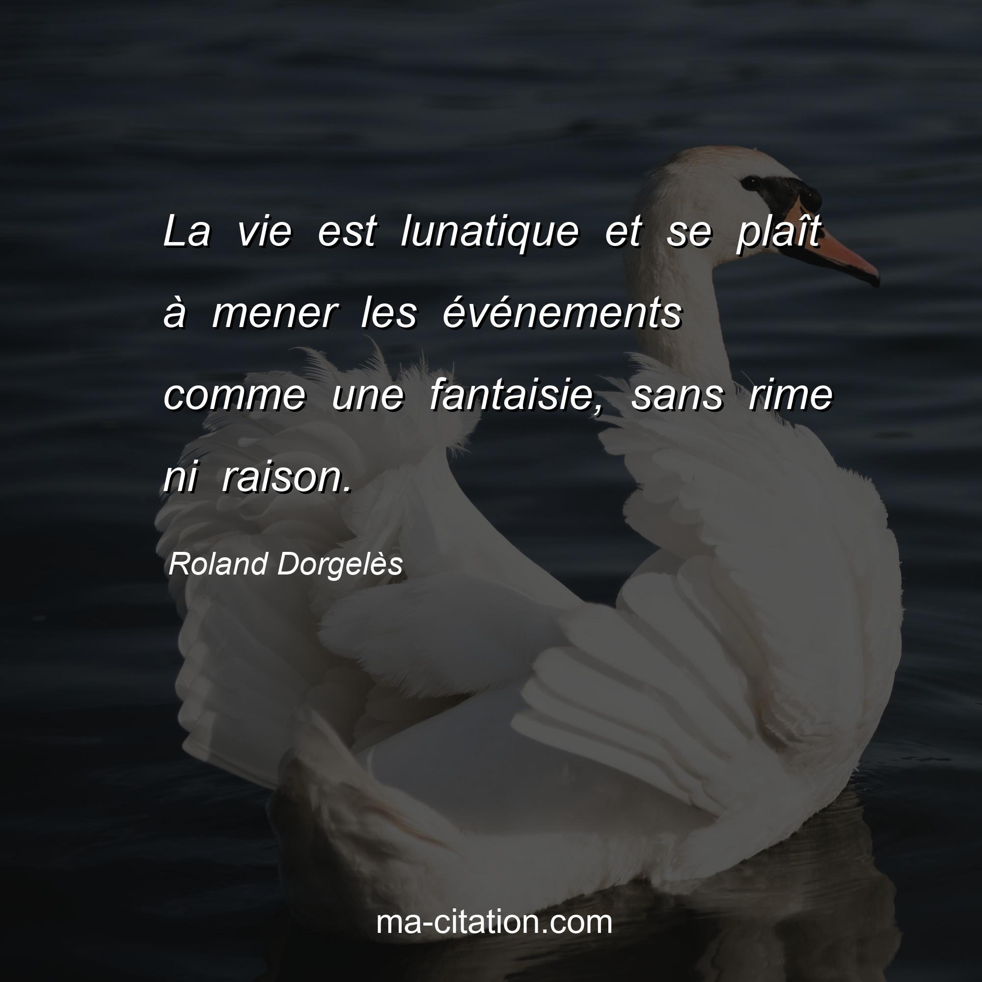 Citation sur la vie de Roland Dorgelès :La vie est lunatique et se plaît à mener les événements comme une fantaisie, sans rime ni raison.
