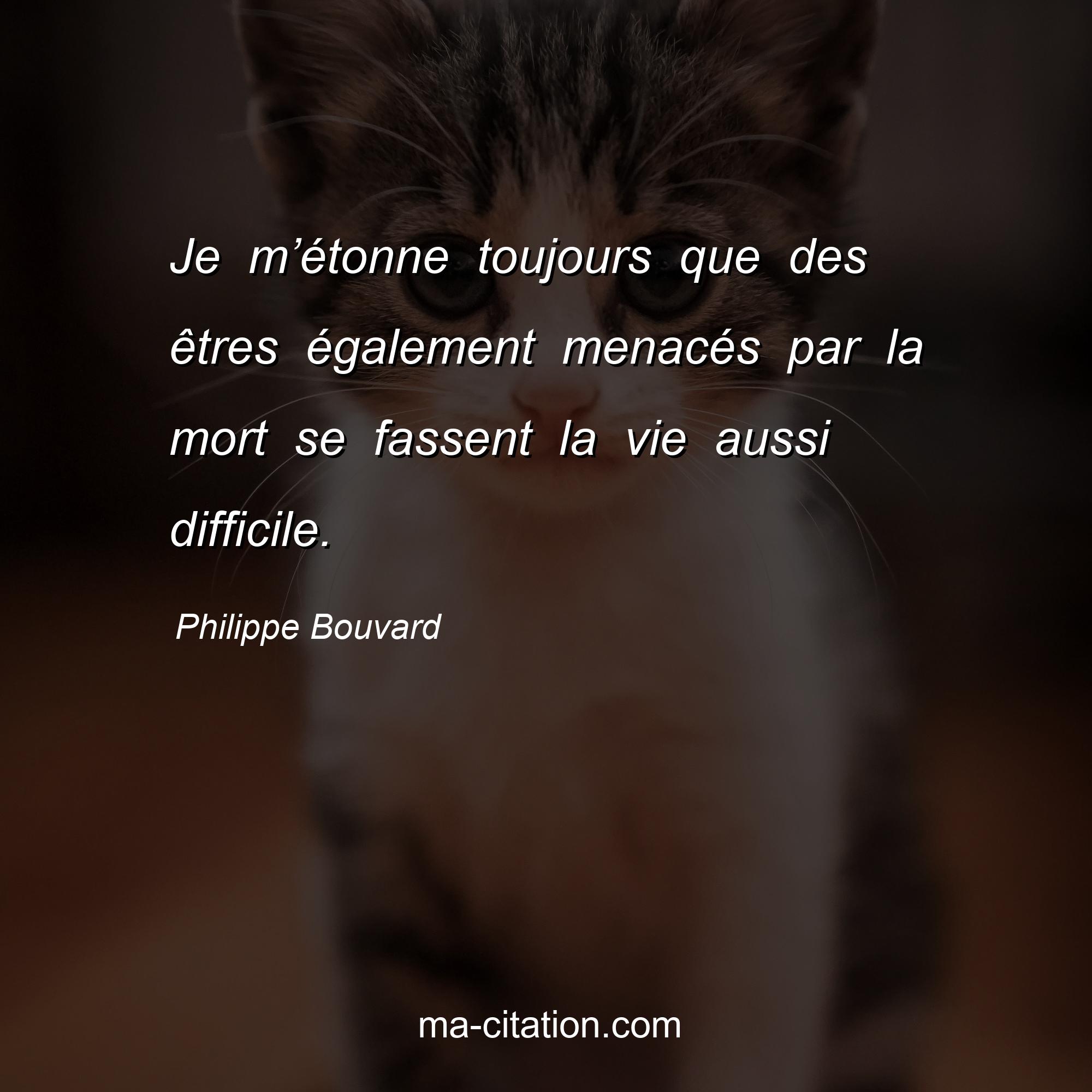 Citation sur la vie de Philippe Bouvard :Je m’étonne toujours que des êtres également menacés par la mort se fassent la vie aussi difficile.