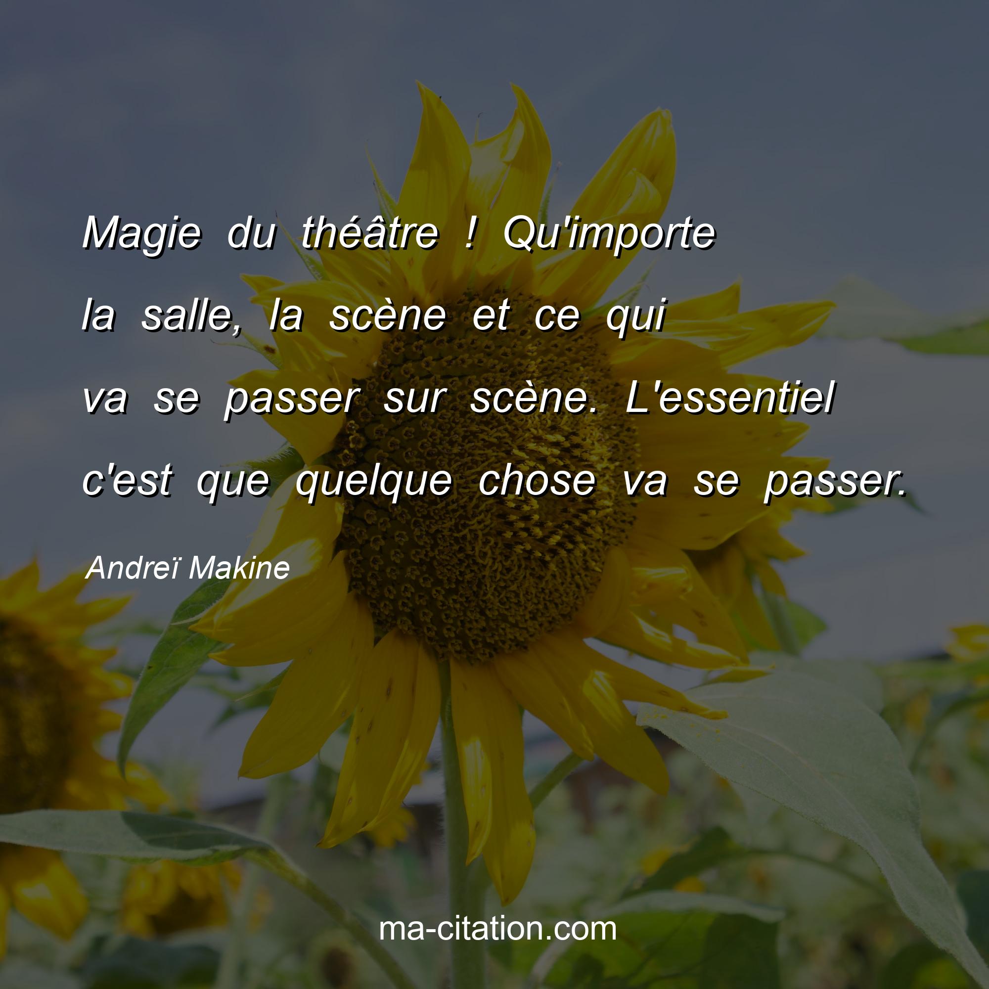 Citation sur la vie d'Andreï Makine :Magie du théâtre ! Qu'importe la salle, la scène et ce qui va se passer sur scène. L'essentiel c'est que quelque chose va se passer.