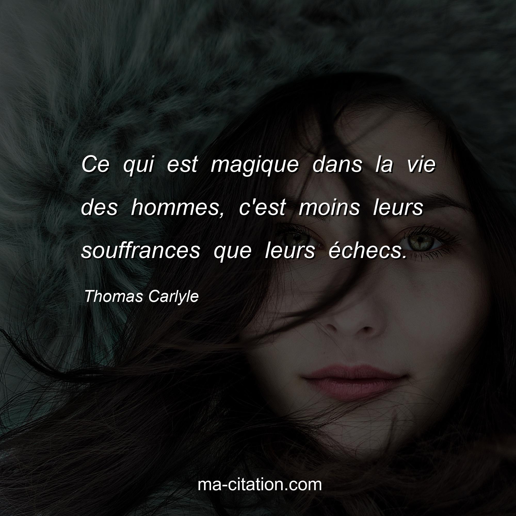 Citation sur la vie de Thomas Carlyle :Ce qui est magique dans la vie des hommes, c'est moins leurs souffrances que leurs échecs.