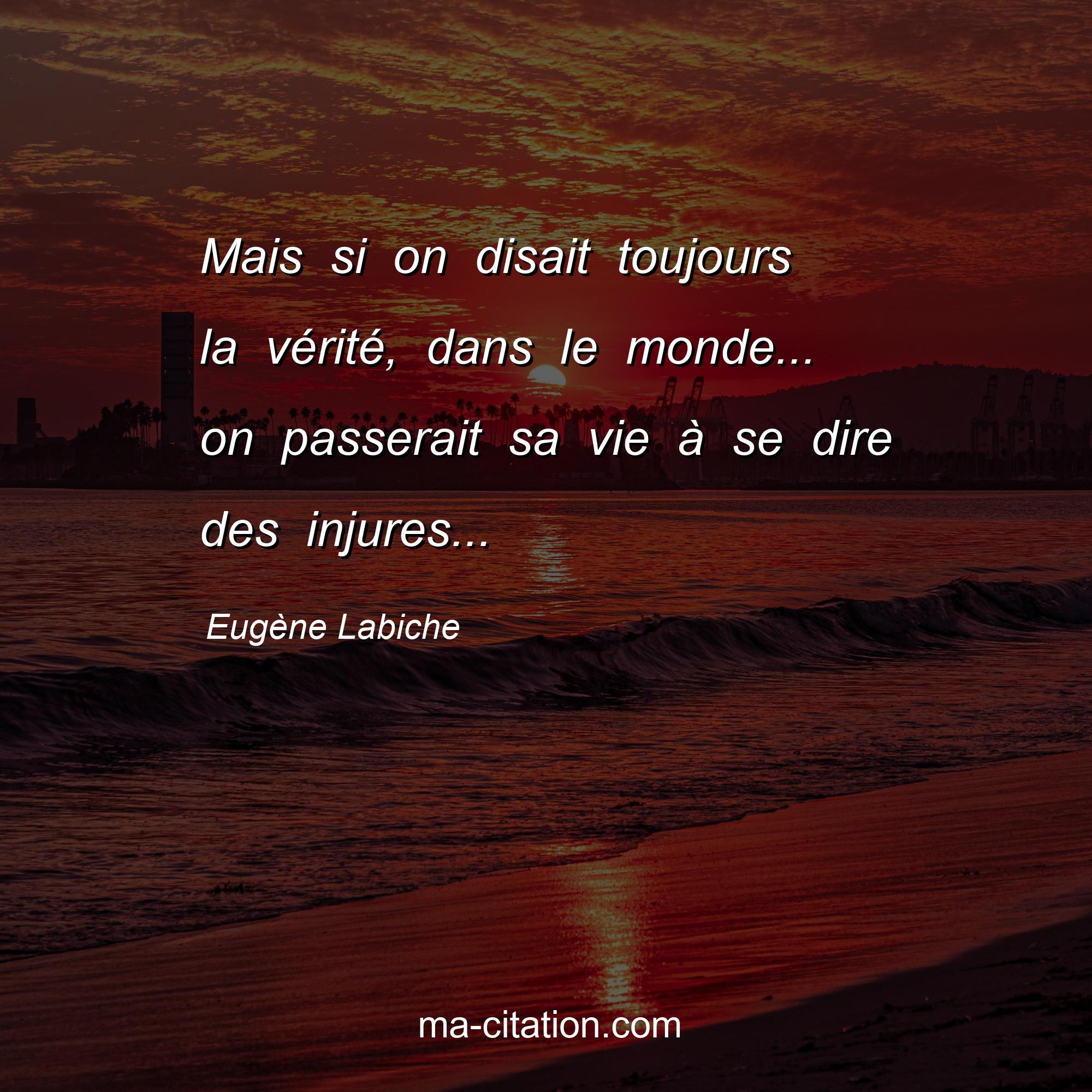 Eugène Labiche est l'auteur de la citation sur la vie "Mais si on disait toujours la vérité, dans le monde... on passerait sa vie à se dire des injures...".