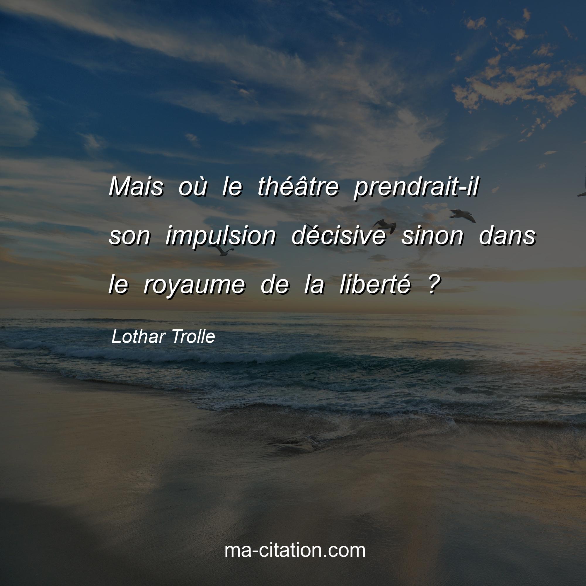 Citation sur la vie de Lothar Trolle :Mais où le théâtre prendrait-il son impulsion décisive sinon dans le royaume de la liberté ?