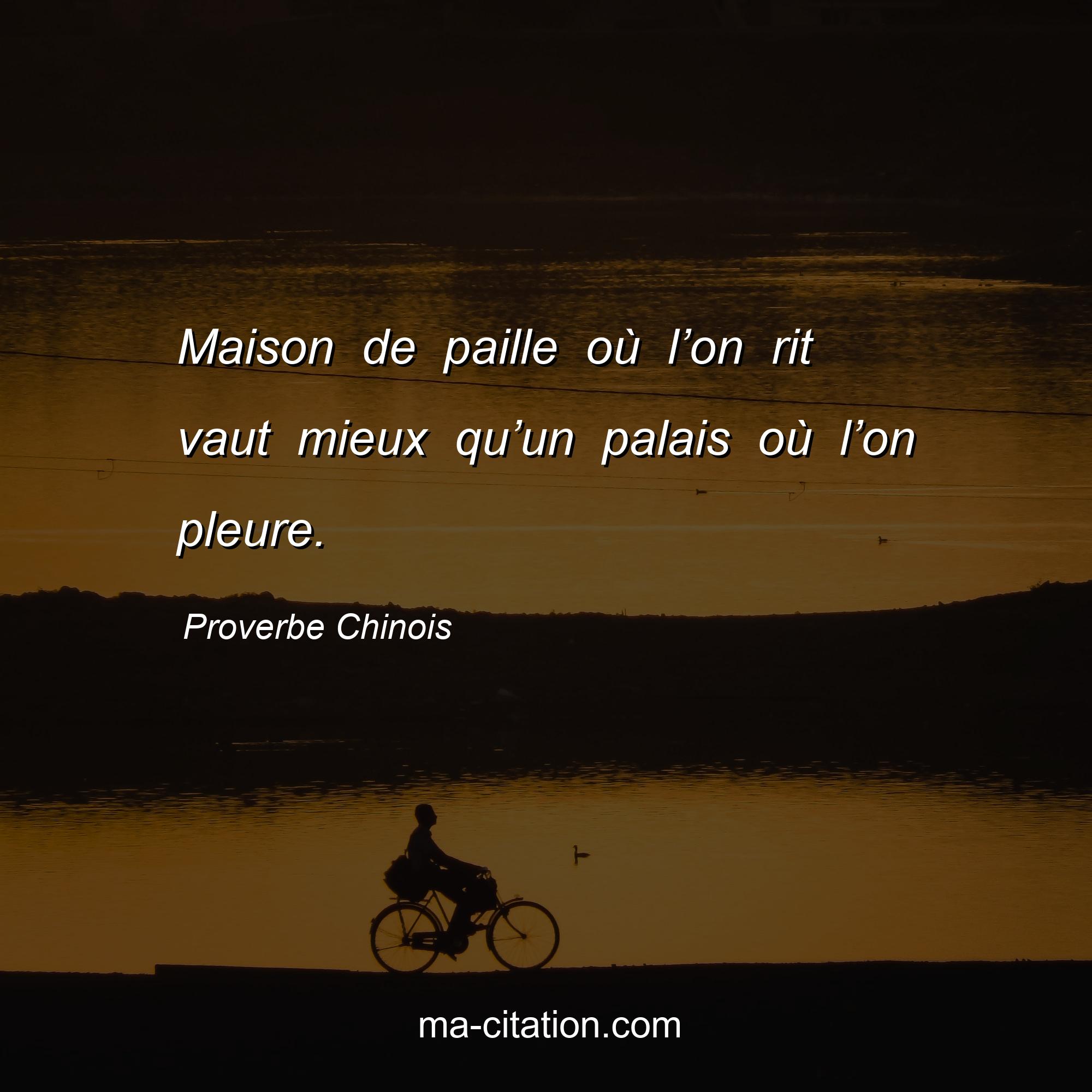 Proverbe Chinois sur la vie :Maison de paille où l’on rit vaut mieux qu’un palais où l’on pleure.