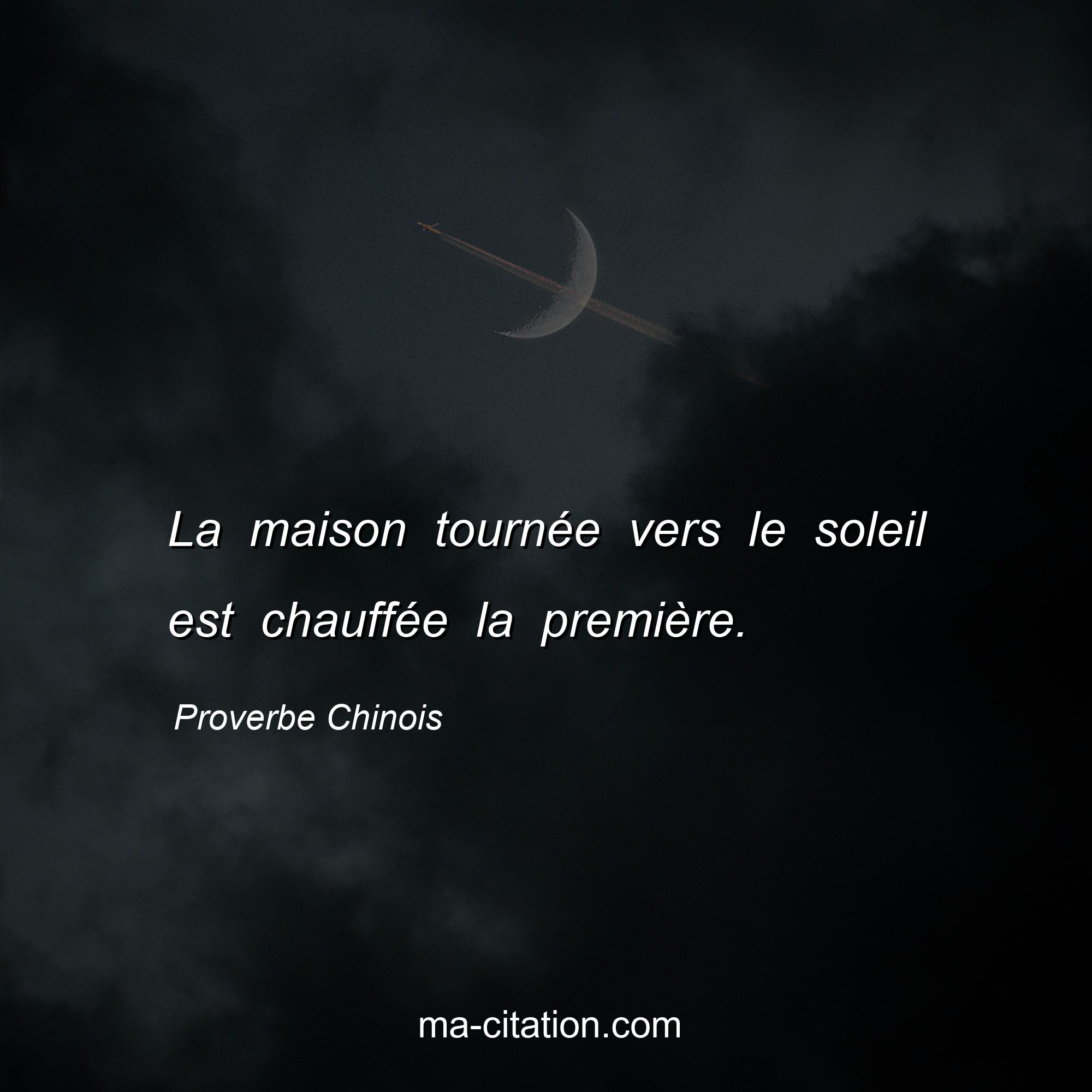 Proverbe Chinois sur la vie :La maison tournée vers le soleil est chauffée la première.
