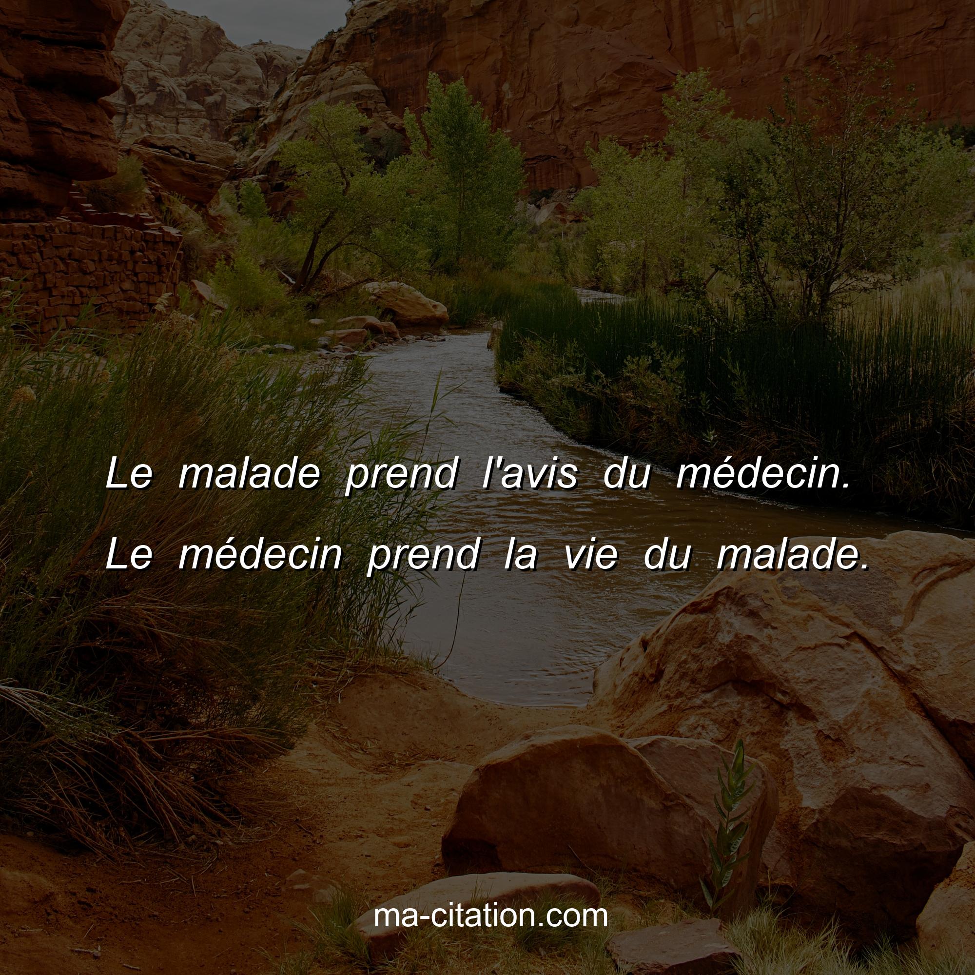 Citation sur la vie :Le malade prend l'avis du médecin. Le médecin prend la vie du malade.