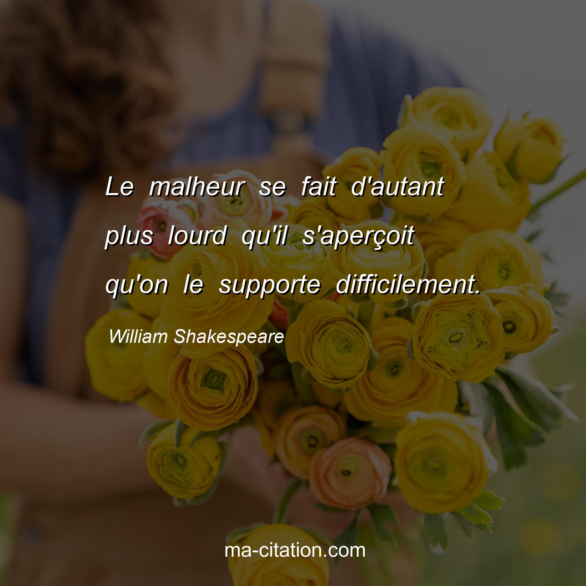 Citation sur la vie de William Shakespeare :Le malheur se fait d'autant plus lourd qu'il s'aperçoit qu'on le supporte difficilement.