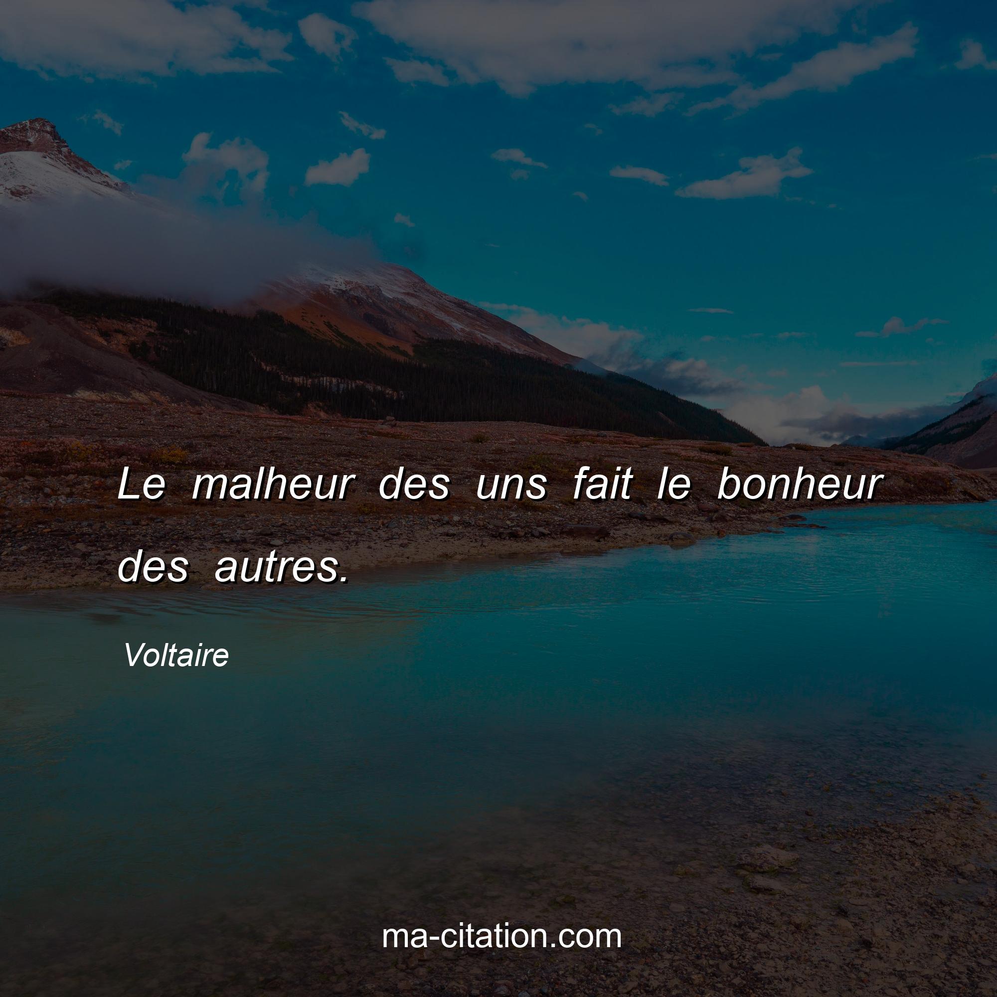 Citation sur la vie de Voltaire :Le malheur des uns fait le bonheur des autres.
