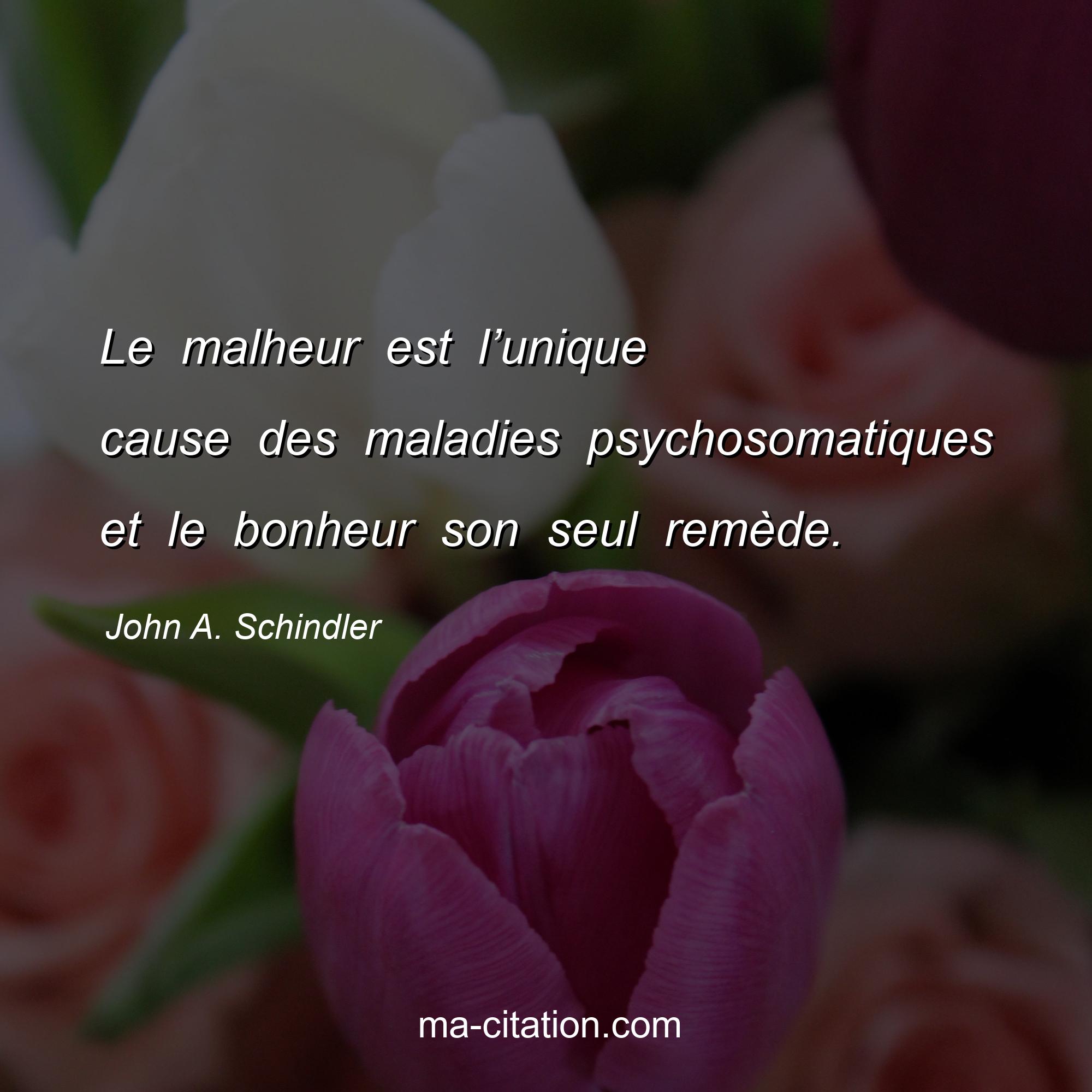 Citation sur la vie de John A. Schindler :Le malheur est l’unique cause des maladies psychosomatiques et le bonheur son seul remède.