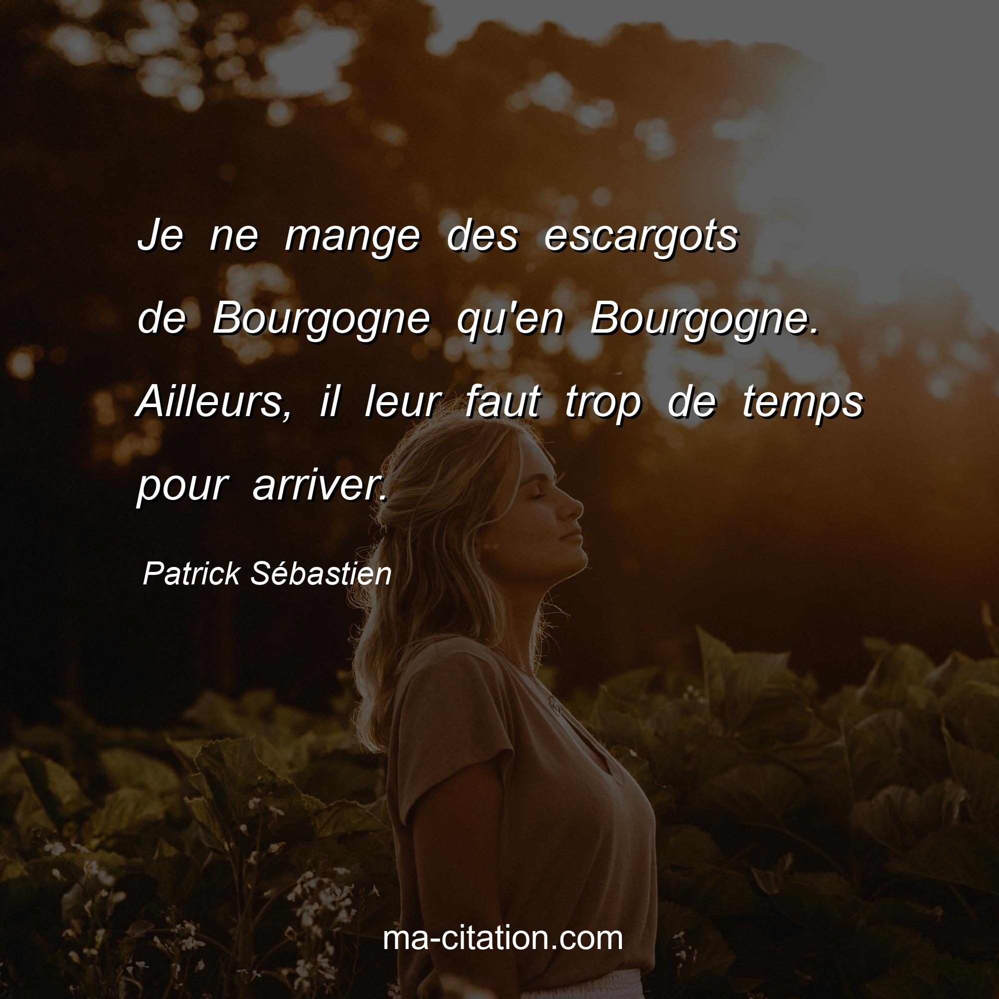 Citation sur la vie de Patrick Sébastien :Je ne mange des escargots de Bourgogne qu'en Bourgogne. Ailleurs, il leur faut trop de temps pour arriver.
