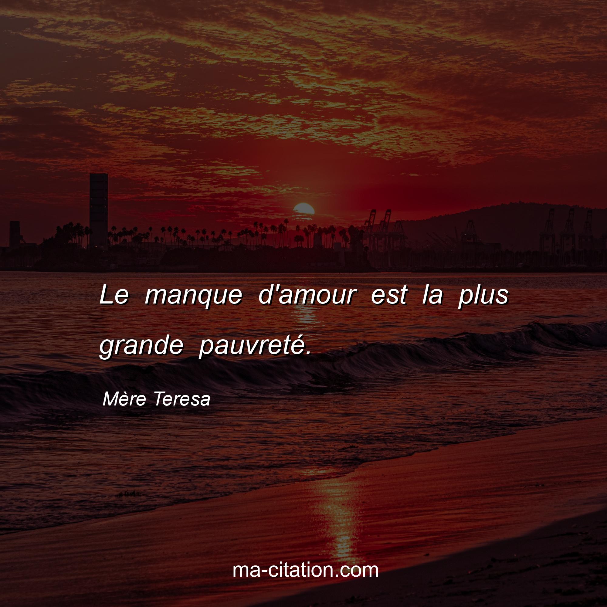 Citation sur la vie de Mère Teresa :Le manque d'amour est la plus grande pauvreté.