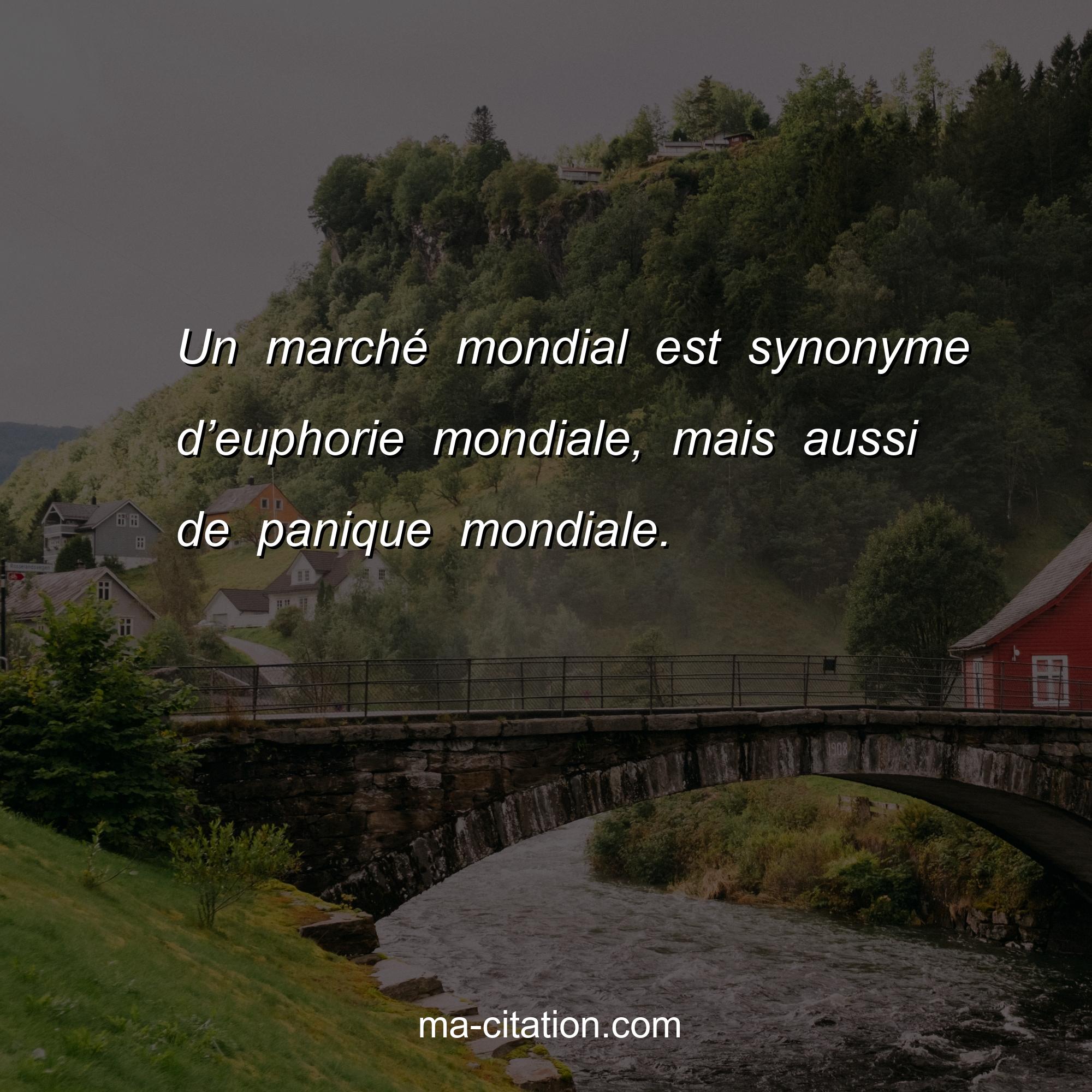 Citation sur la vie :Un marché mondial est synonyme d’euphorie mondiale, mais aussi de panique mondiale.