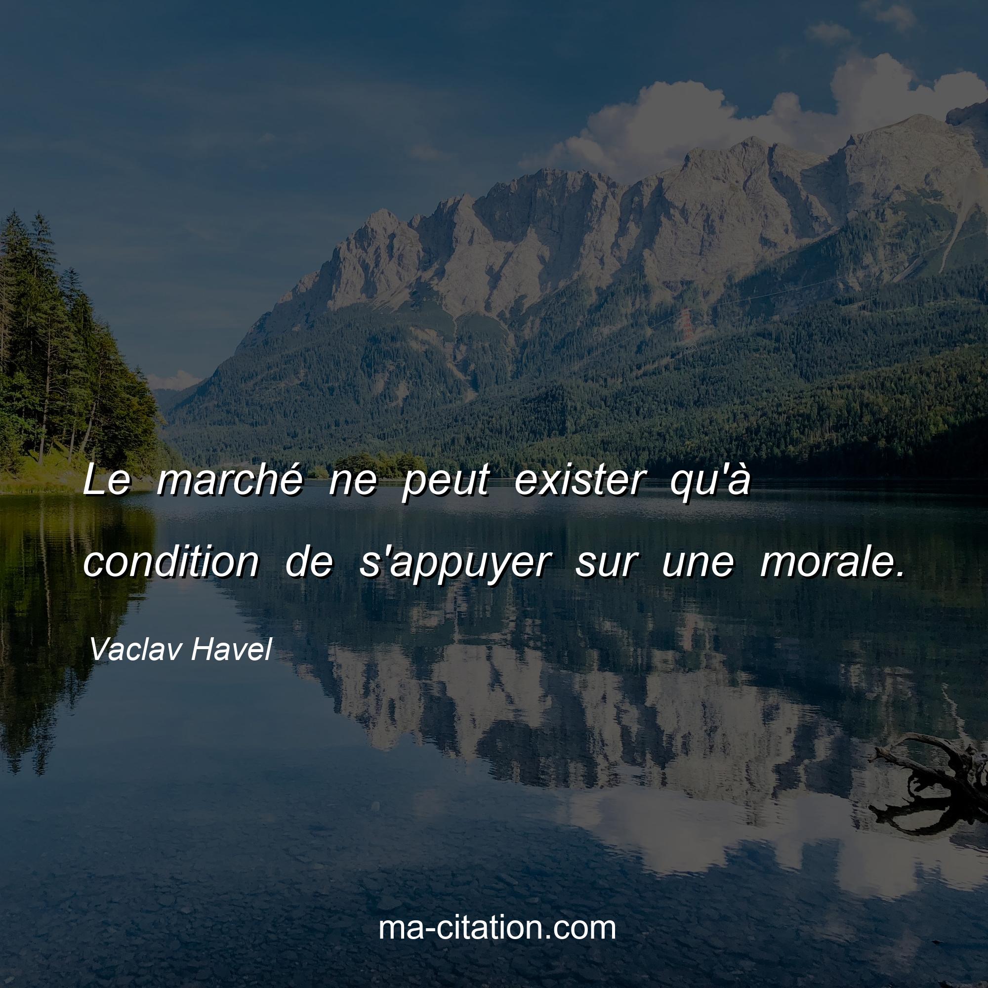 Citation sur la vie de Vaclav Havel :Le marché ne peut exister qu'à condition de s'appuyer sur une morale.