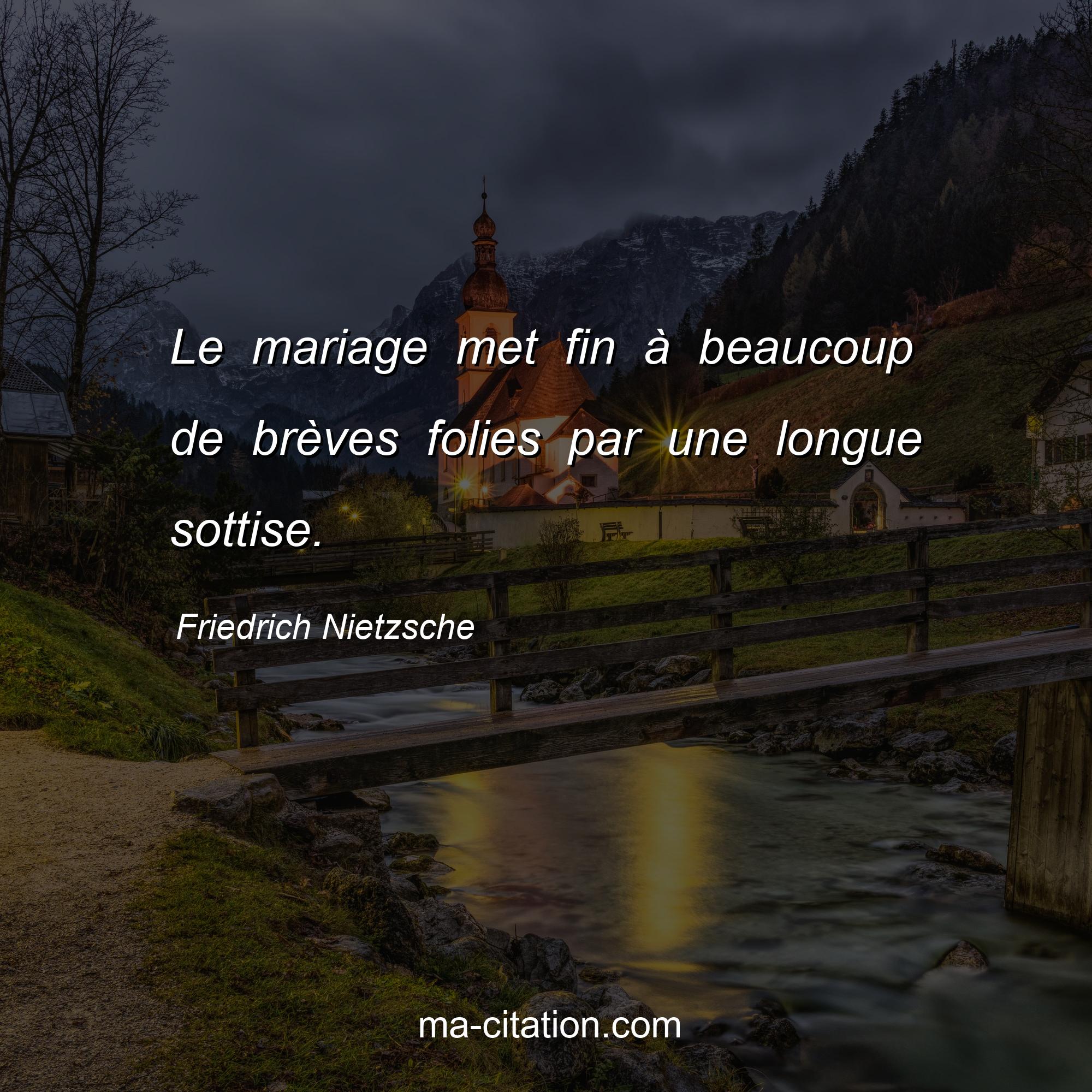 Citation sur la vie de Friedrich Nietzsche :Le mariage met fin à beaucoup de brèves folies par une longue sottise.