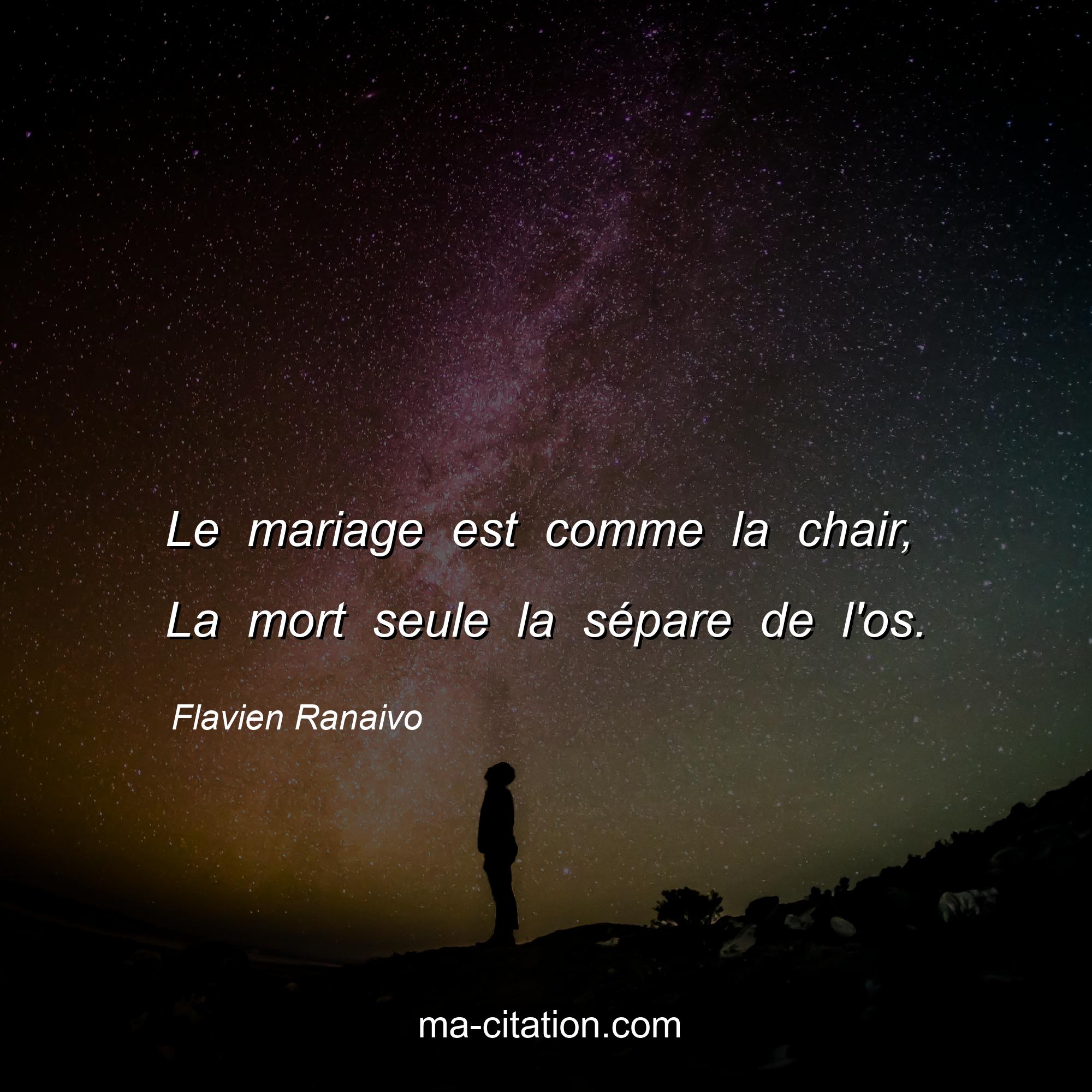 Flavien Ranaivo est l'auteur de la citation sur la vie "Le mariage est comme la chair, La mort seule la sépare de l'os.".