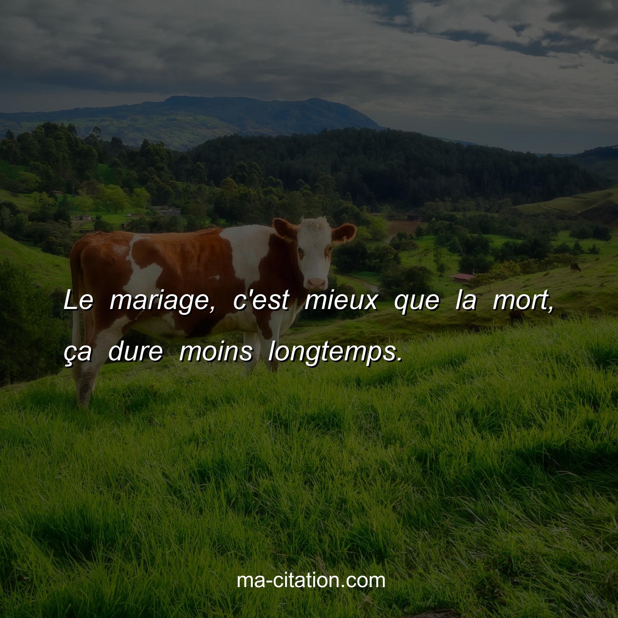 Citation sur la vie :Le mariage, c'est mieux que la mort, ça dure moins longtemps.