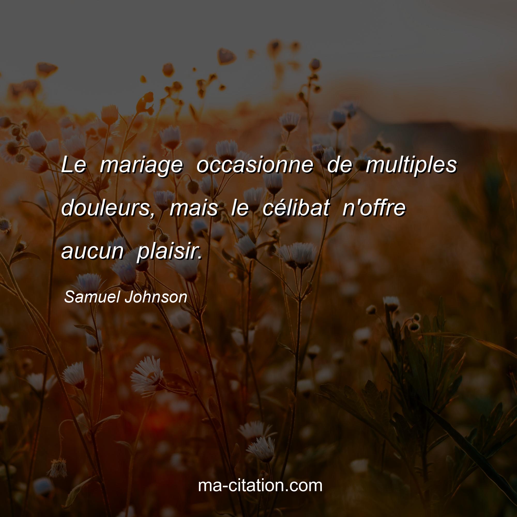 Citation sur la vie de Samuel Johnson :Le mariage occasionne de multiples douleurs, mais le célibat n'offre aucun plaisir.