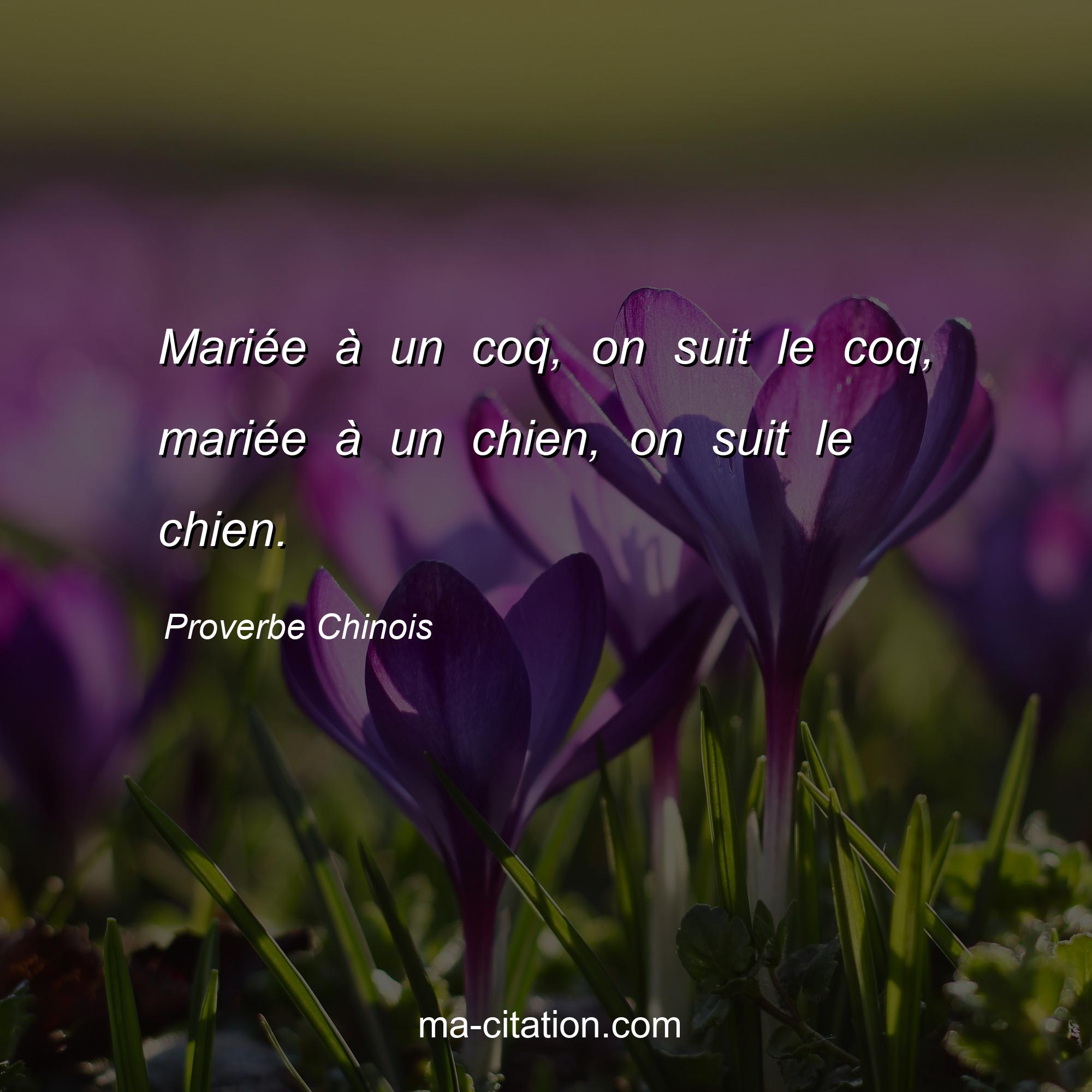 Proverbe Chinois sur la vie :Mariée à un coq, on suit le coq, mariée à un chien, on suit le chien.