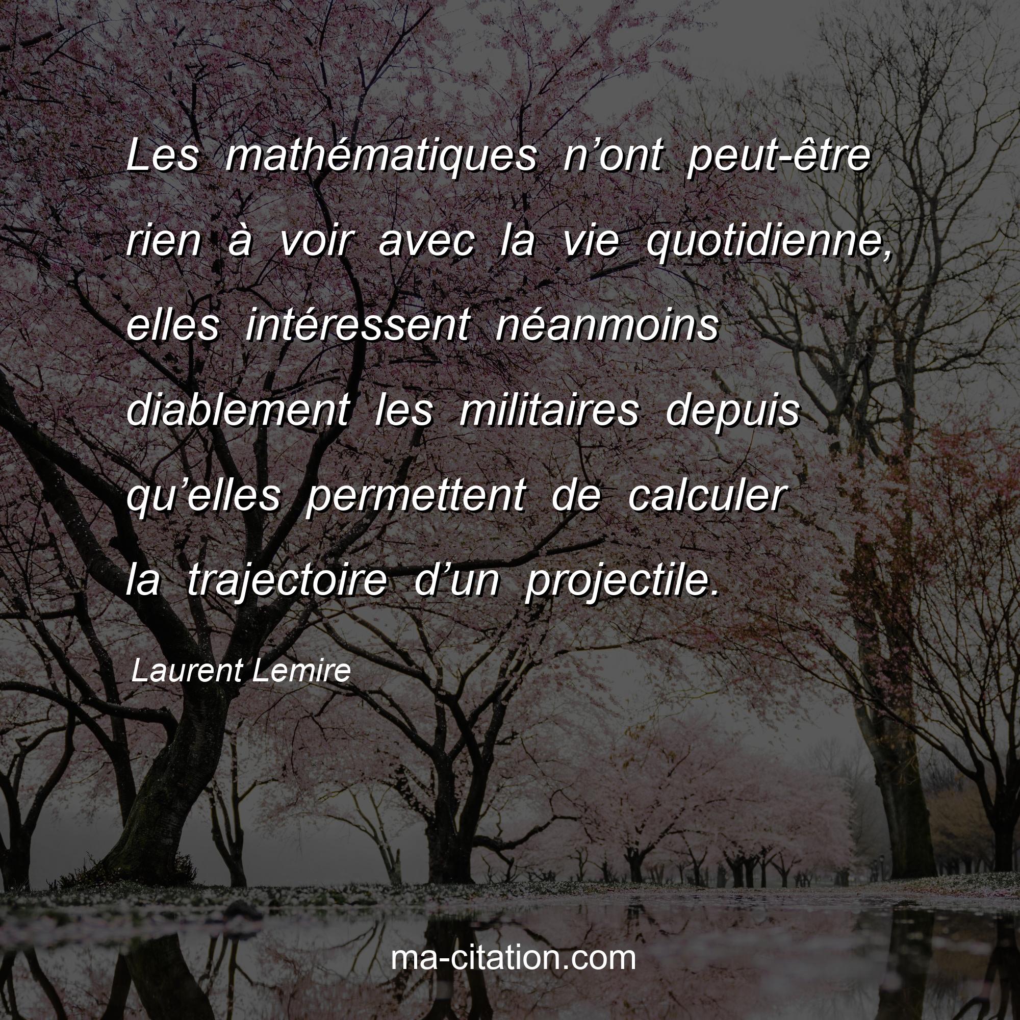 Laurent Lemire est l'auteur de la citation sur la vie "Les mathématiques n’ont peut-être rien à voir avec la vie quotidienne, elles intéressent néanmoins diablement les militaires depuis qu’elles permettent de calculer la trajectoire d’un projectile.".