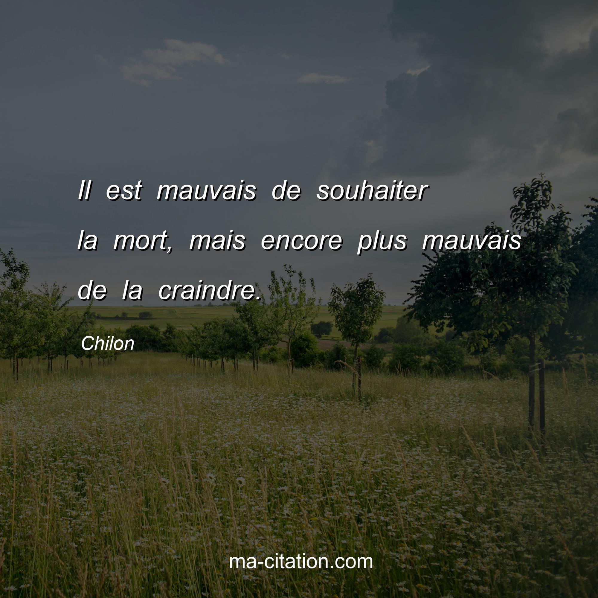 Citation sur la vie de Chilon :Il est mauvais de souhaiter la mort, mais encore plus mauvais de la craindre.