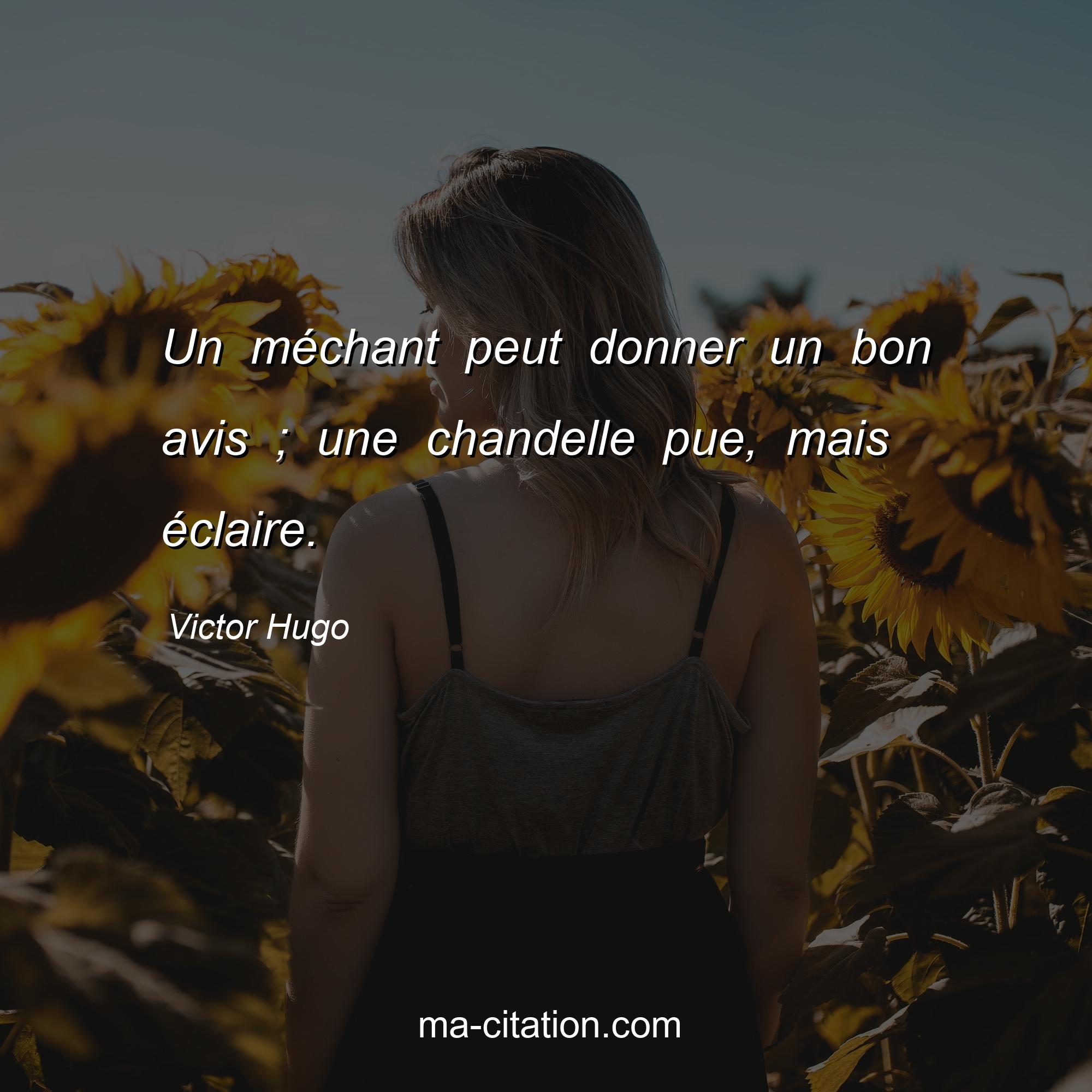 Citation sur la vie de Victor Hugo :Un méchant peut donner un bon avis ; une chandelle pue, mais éclaire.