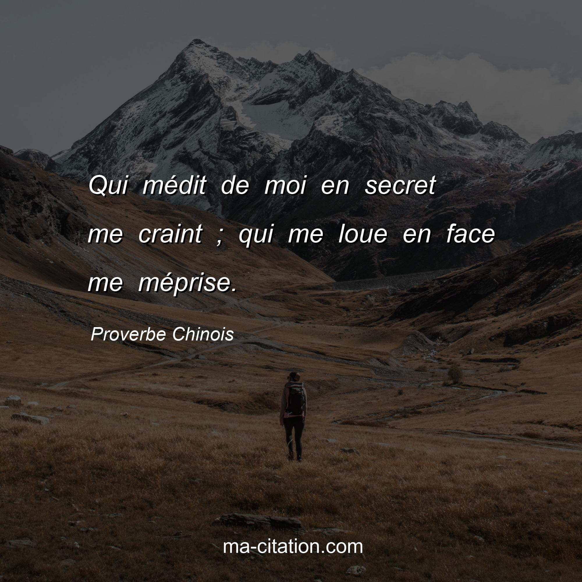 Proverbe Chinois sur la vie :Qui médit de moi en secret me craint ; qui me loue en face me méprise.