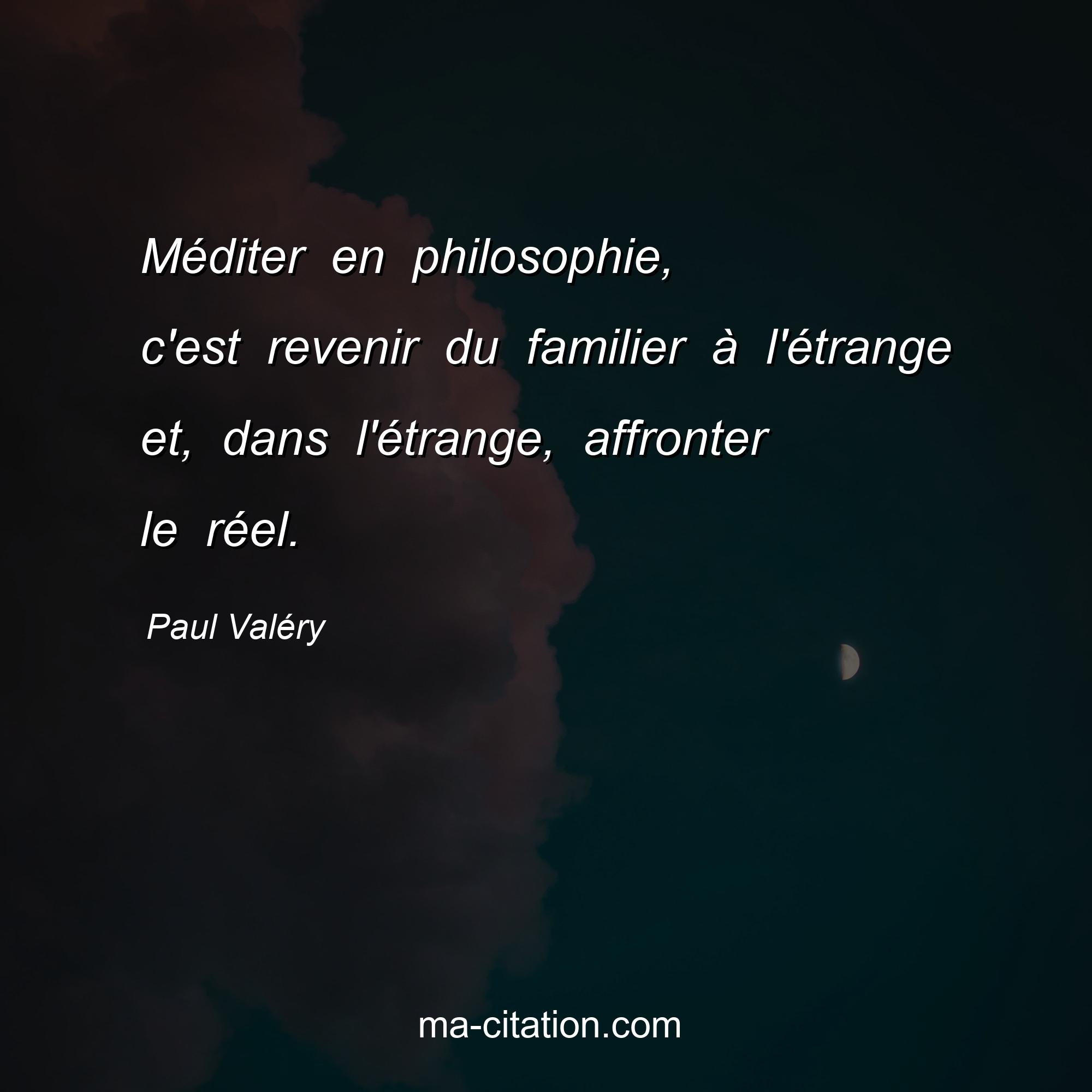 Citation sur la vie de Paul Valéry :Méditer en philosophie, c'est revenir du familier à l'étrange et, dans l'étrange, affronter le réel.