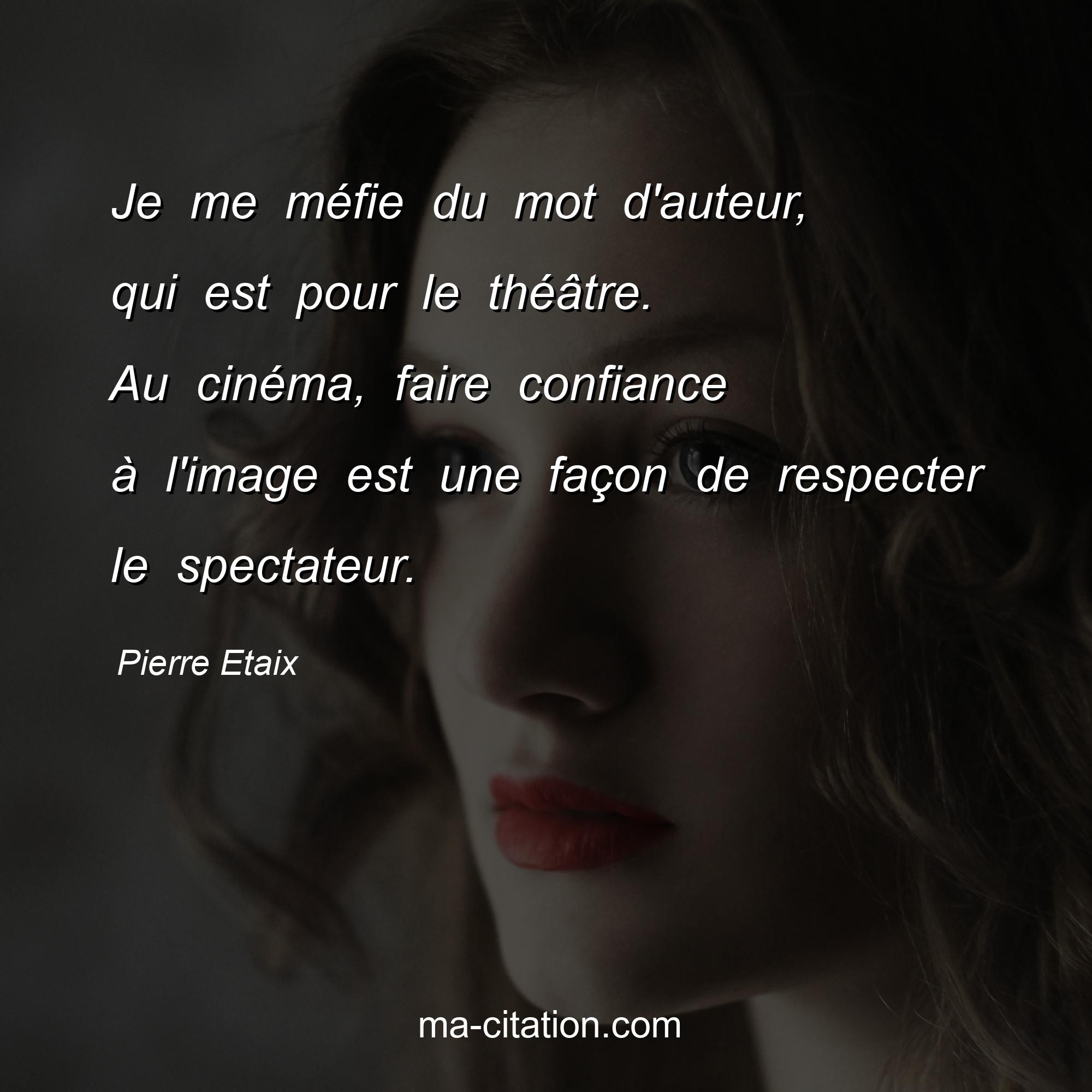 Citation sur la vie de Pierre Etaix :Je me méfie du mot d'auteur, qui est pour le théâtre. Au cinéma, faire confiance à l'image est une façon de respecter le spectateur.