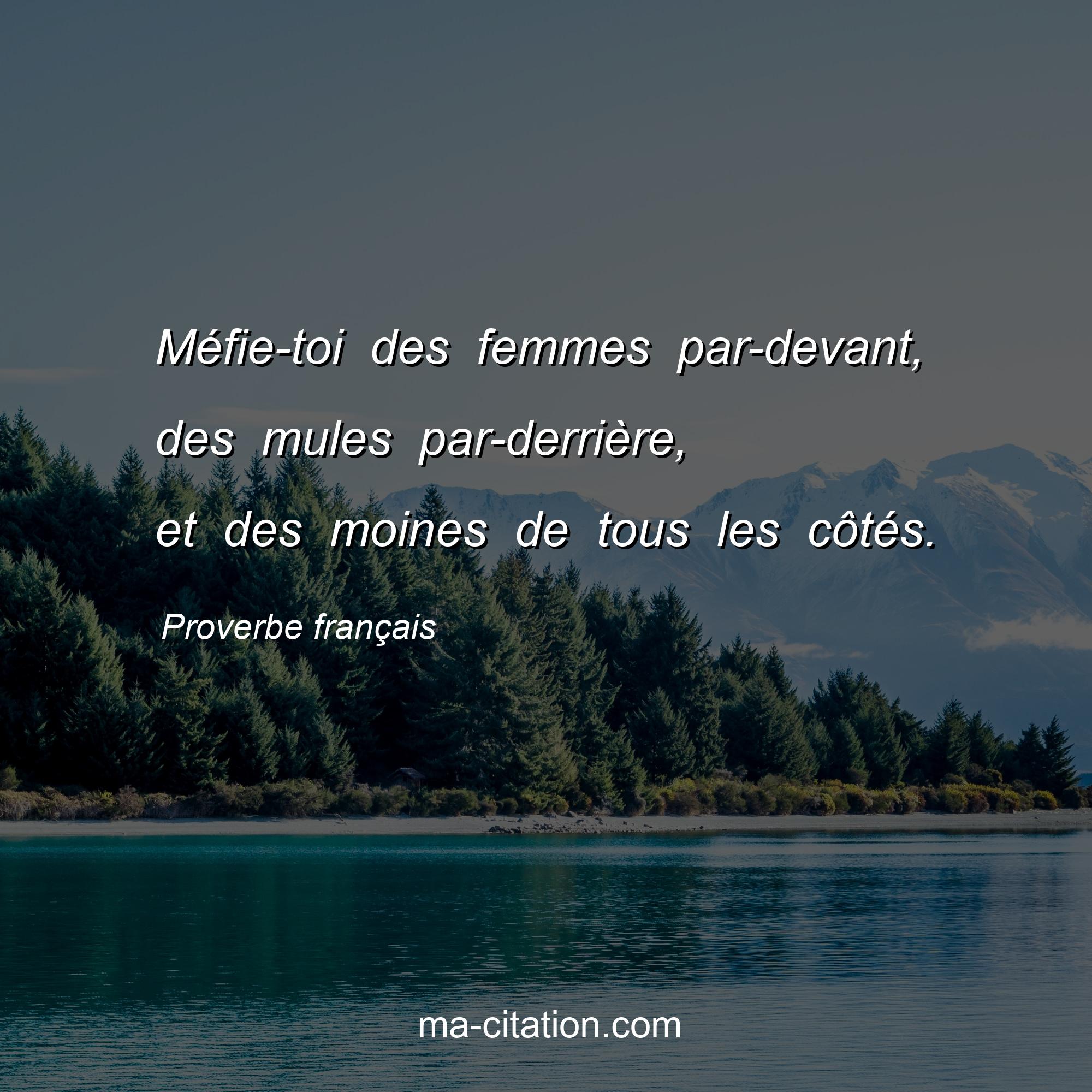 Proverbe français sur la vie :Méfie-toi des femmes par-devant, des mules par-derrière, et des moines de tous les côtés.