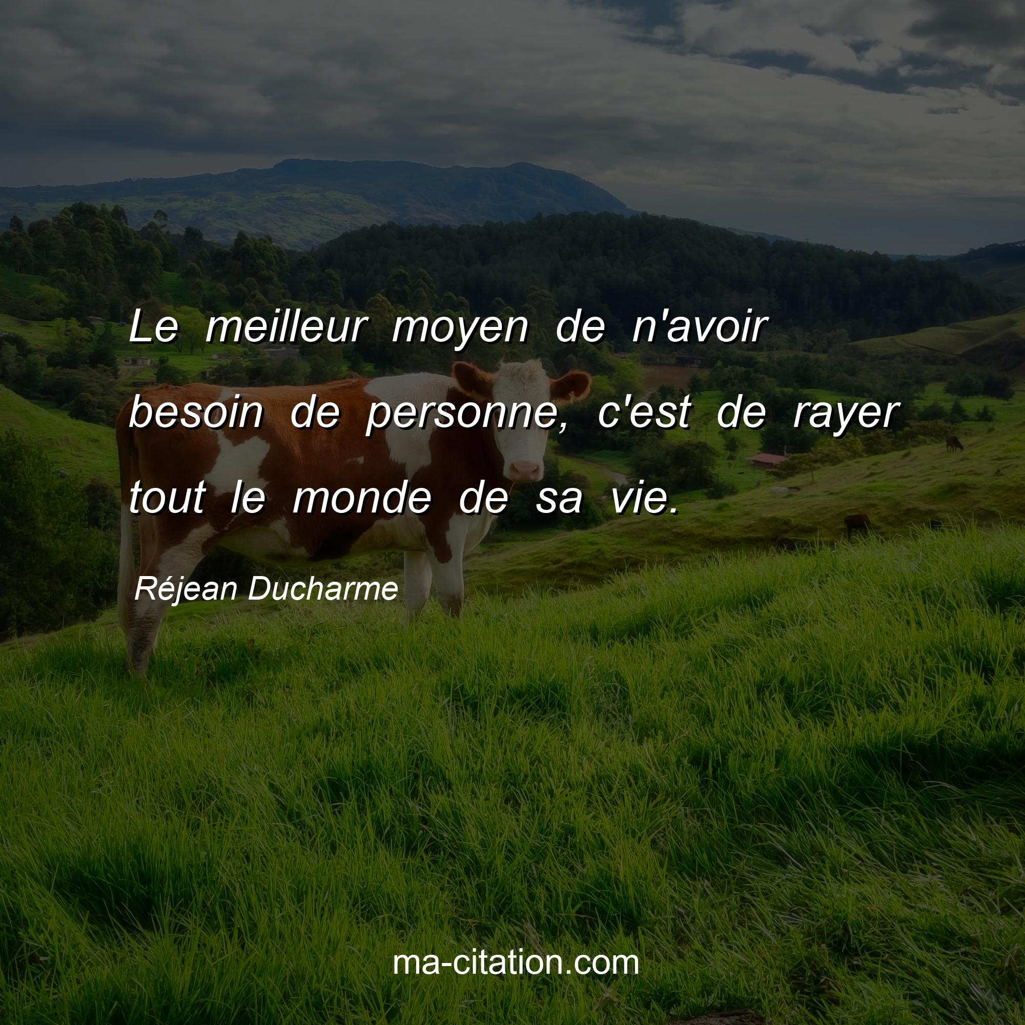 Réjean Ducharme est l'auteur de la citation sur la vie "Le meilleur moyen de n'avoir besoin de personne, c'est de rayer tout le monde de sa vie.".