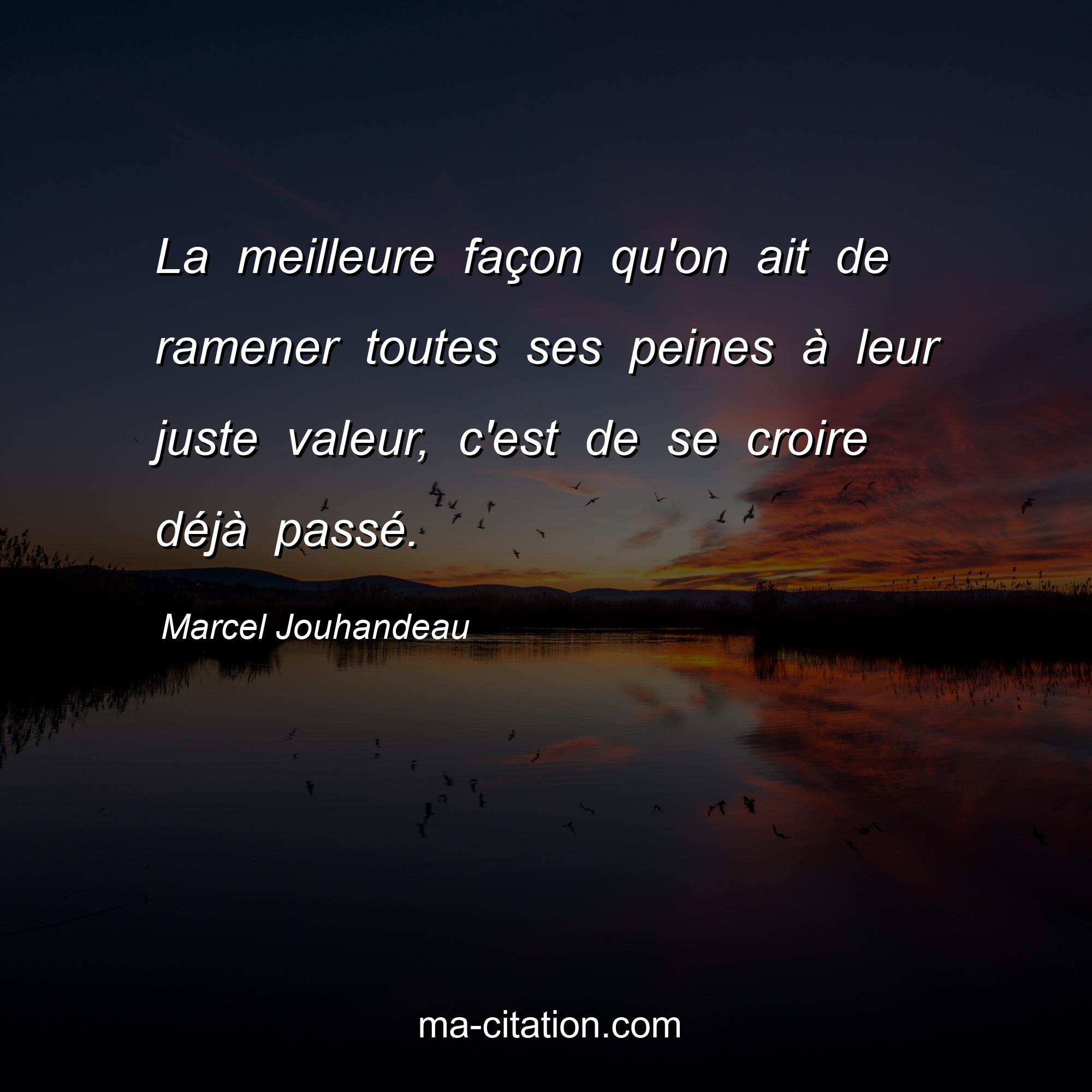 Citation sur la vie de Marcel Jouhandeau :La meilleure façon qu'on ait de ramener toutes ses peines à leur juste valeur, c'est de se croire déjà passé.