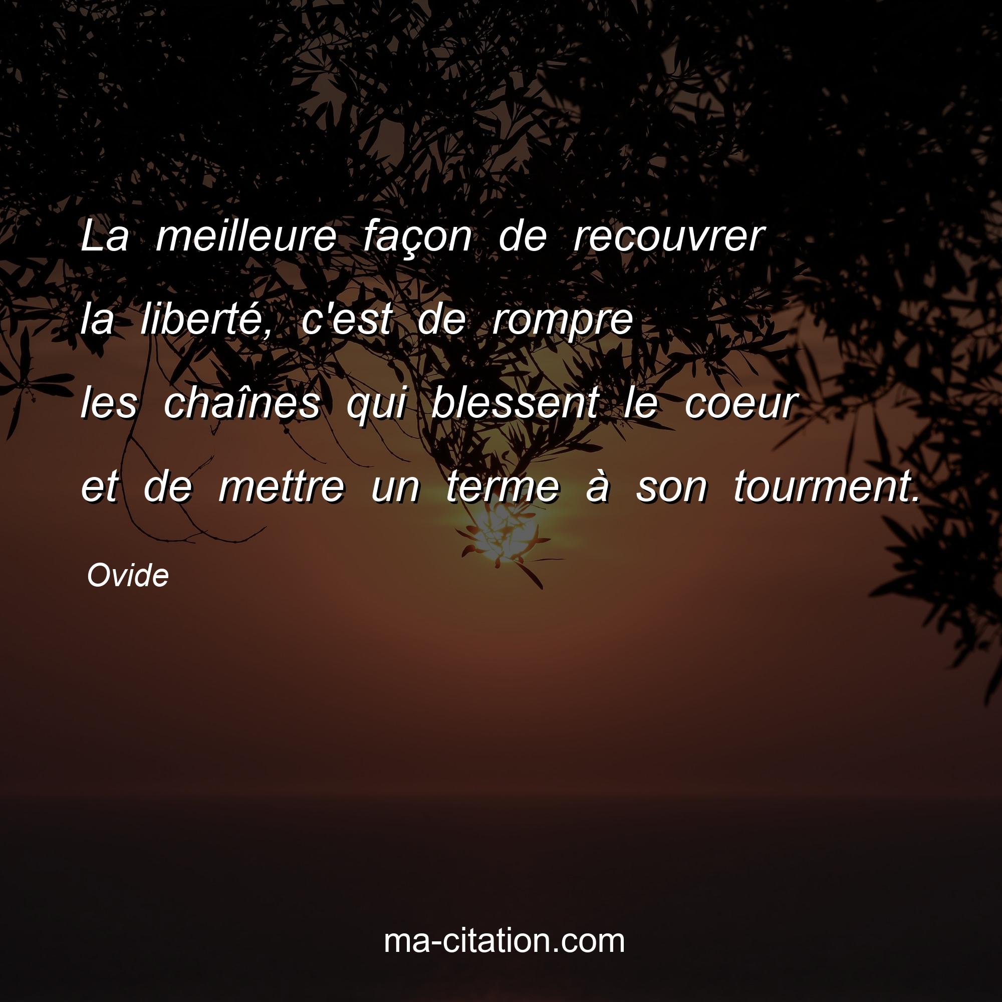Ovide est l'auteur de la citation sur la vie "La meilleure façon de recouvrer la liberté, c'est de rompre les chaînes qui blessent le coeur et de mettre un terme à son tourment.".