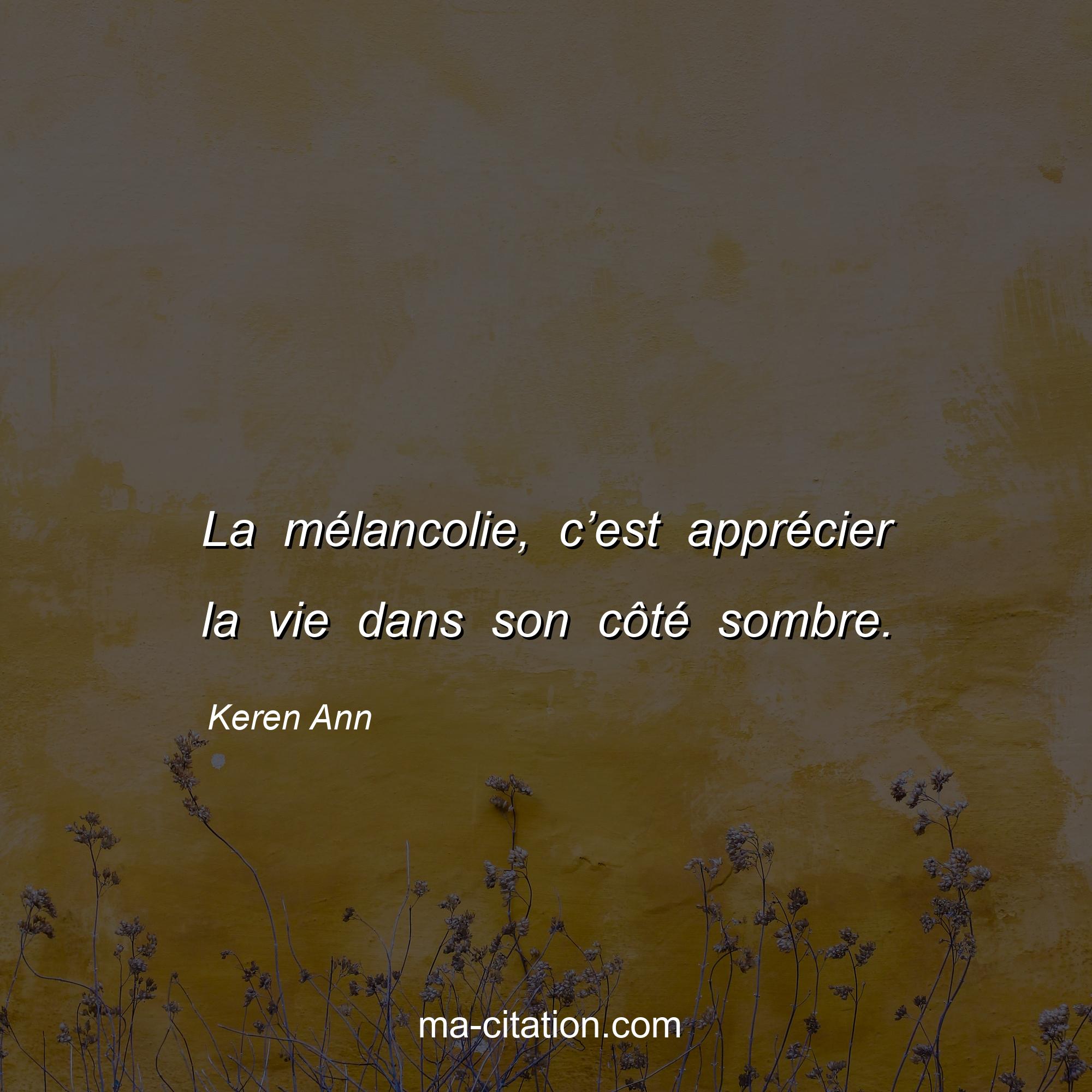 Citation sur la vie de Keren Ann :La mélancolie, c’est apprécier la vie dans son côté sombre.