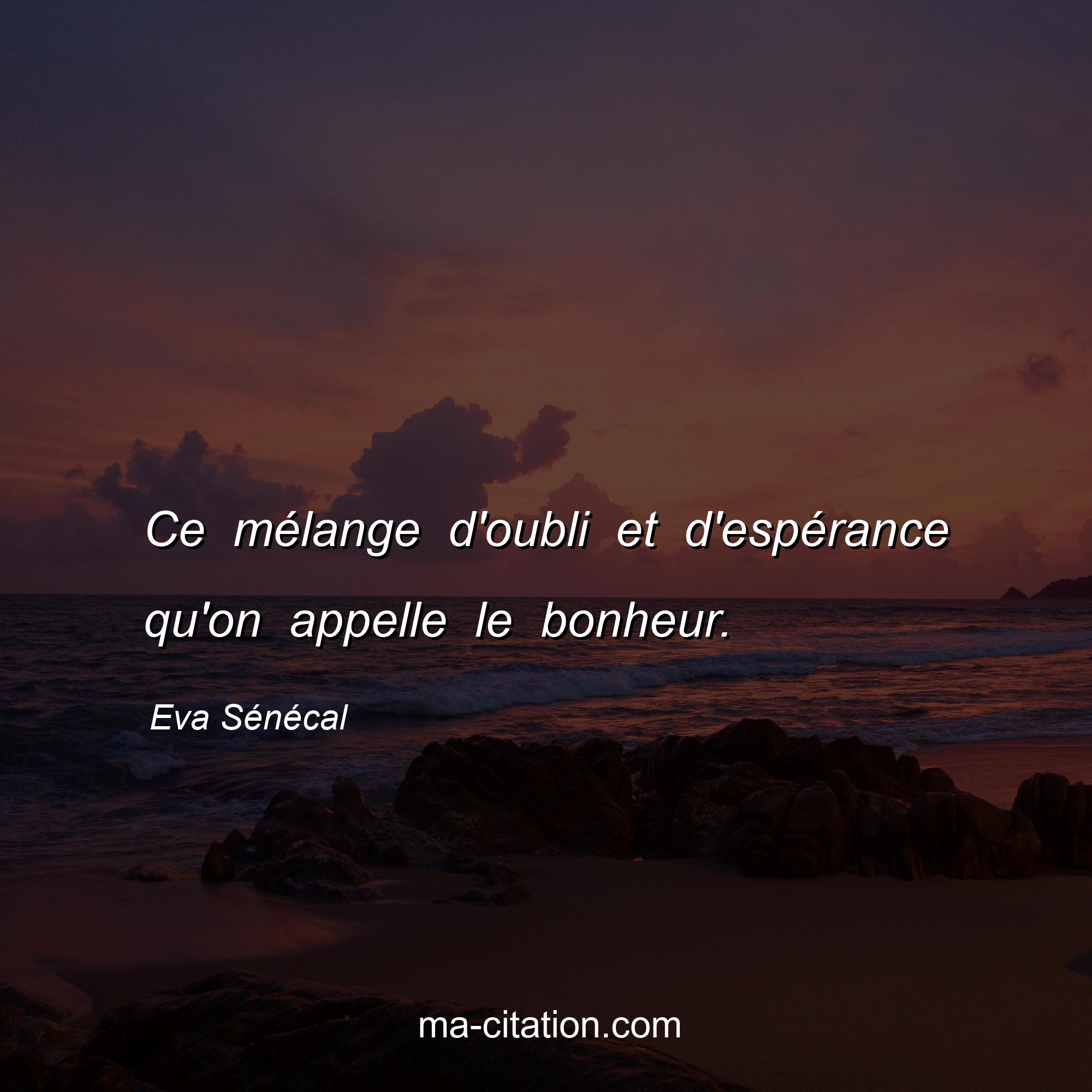 Eva Sénécal est l'auteur de la citation sur la vie "Ce mélange d'oubli et d'espérance qu'on appelle le bonheur.".